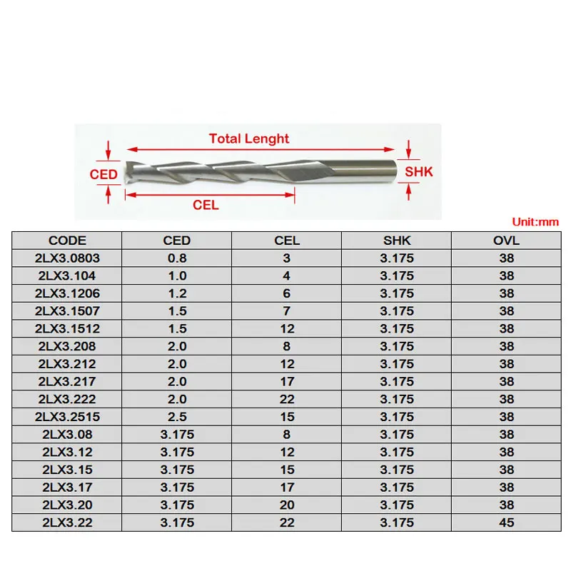 HUHAO 3,175 SHK карбидный фрезерный станок с ЧПУ, две канавки, спиральные концевые фрезы, двойная продольные фрезы, спиральный резак для ПВХ