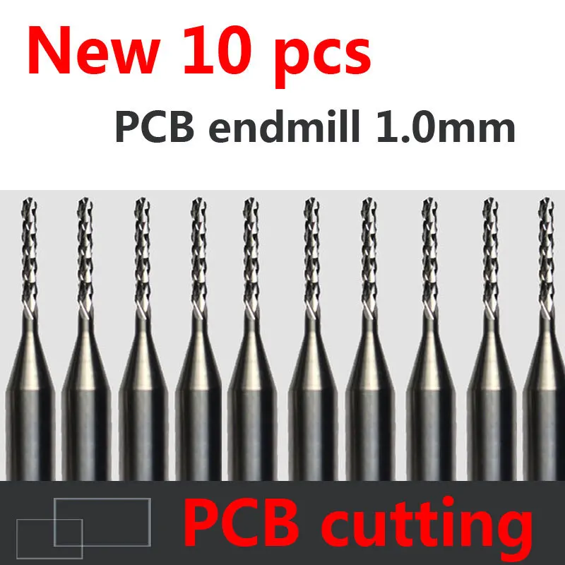 10 шт. Карбид PCB CNC гравировальные биты Торцевая мельница-1,0 мм диаметр