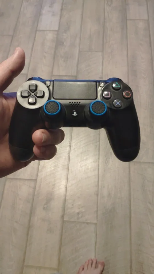 Отличные накладки, садятся на PS4 с трудом, но сидят ооочень плотненько. Цвет как на картинке, разница минимальна, на ощупь тоже приятные, для меня именно вот такой шерховатости для пальцев и не хватало. Заказ приехал через месяц, покупкой очень доволен! Спасибо продавцу!