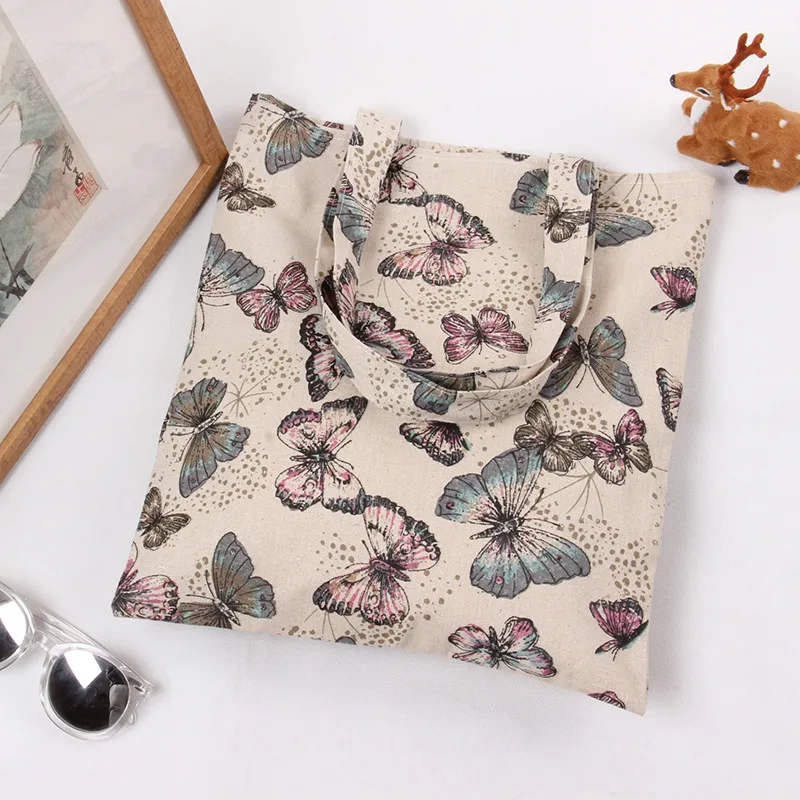 YILE Экологически чистая многоразовая сумка для покупок из хлопка и льна, сумка-тоут через плечо с бабочкой L230, Новинка