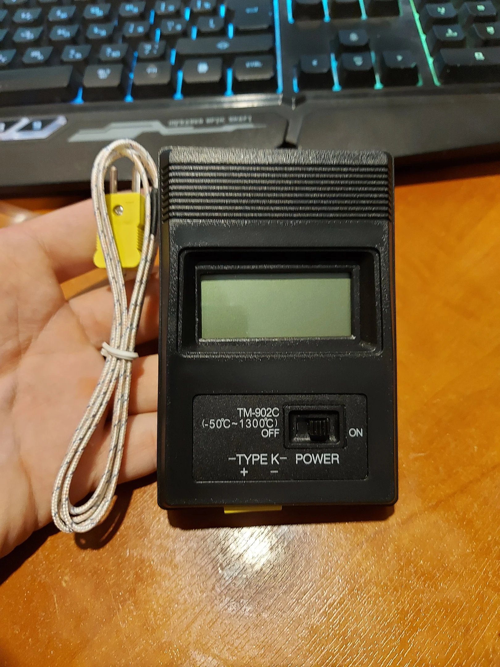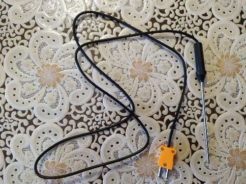 Термопара дешёвая. Спай некачественный, почти сразу развалился. Термометр хороший , использовал с другой термопарой, измеряет в пределах погрешности.