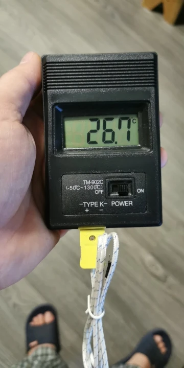 Отличный термометр с термопарой, достаточно точный - в диапазоне до 70 градусов погрешность не более 1%. Первое фото где 36.5 градусов. Решил замерить свою температуру. Ртутный градусник показал 36.6, а этот термометр 36.5, но скорость замера температуры намного выше. Померял температуру включённого светодиодного блока и блока питания для светодиодов, расхождение с лазерным термометром минимальное. Температура в комнате обычным градусником показывается 26,5 градуса, а данный термометр показал 26,4 градуса. Очень точное устройство, полезное в быту и на работе