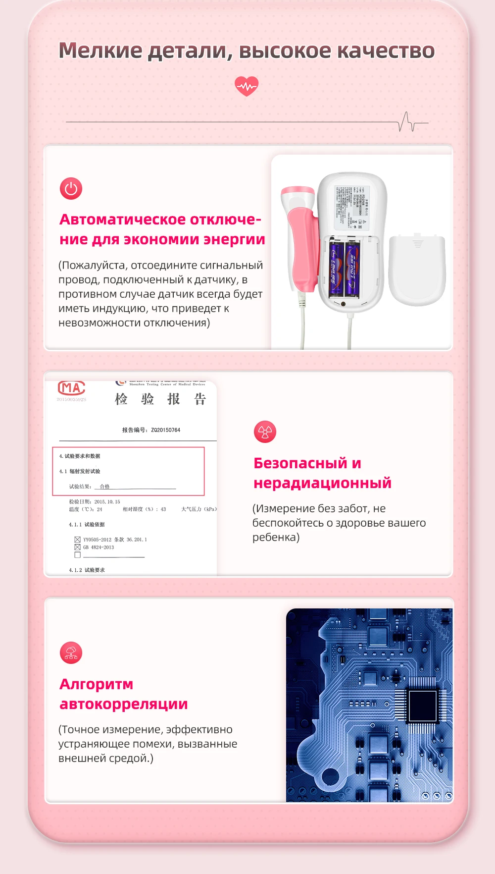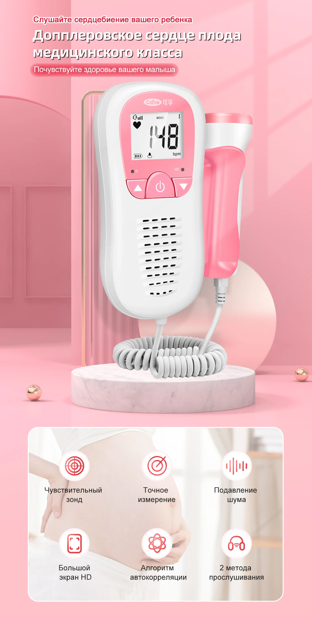 Товаром очень довольна, не жалею о покупке, сердцебиение прослушаю и душевное спокойствие, начала с 14 недель, а доставка из России мега быстрая, за 5 дней