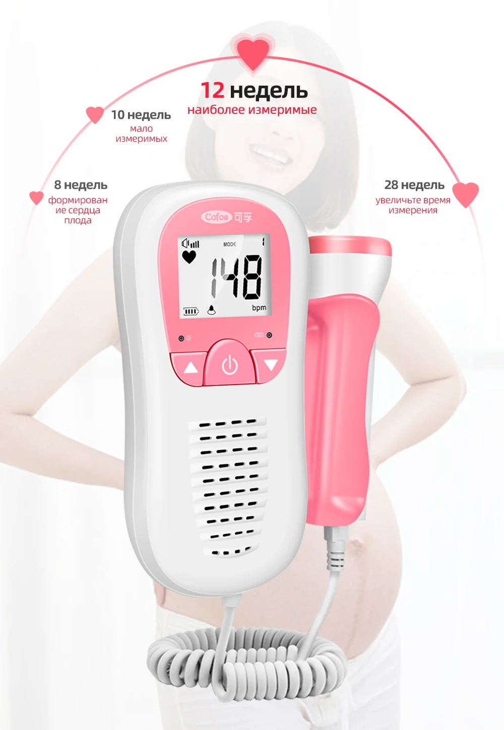 Cofoe фетальный Doppler детектор сердцебиения уход за ребенком бытовой портативный для беременных плода измеритель пульса без излучения стетоскоп