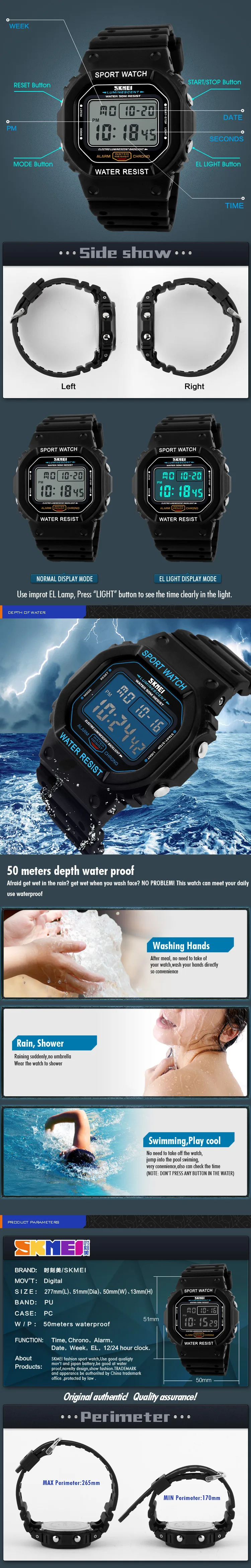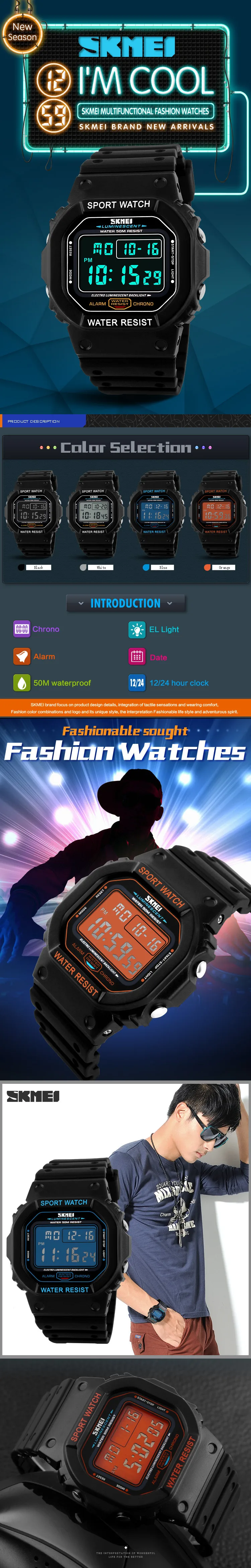 Часы наручные Skmei Мужские Цифровые, брендовые светодиодные модные для спорта на открытом воздухе, для дайвинга до 50 м, 2020