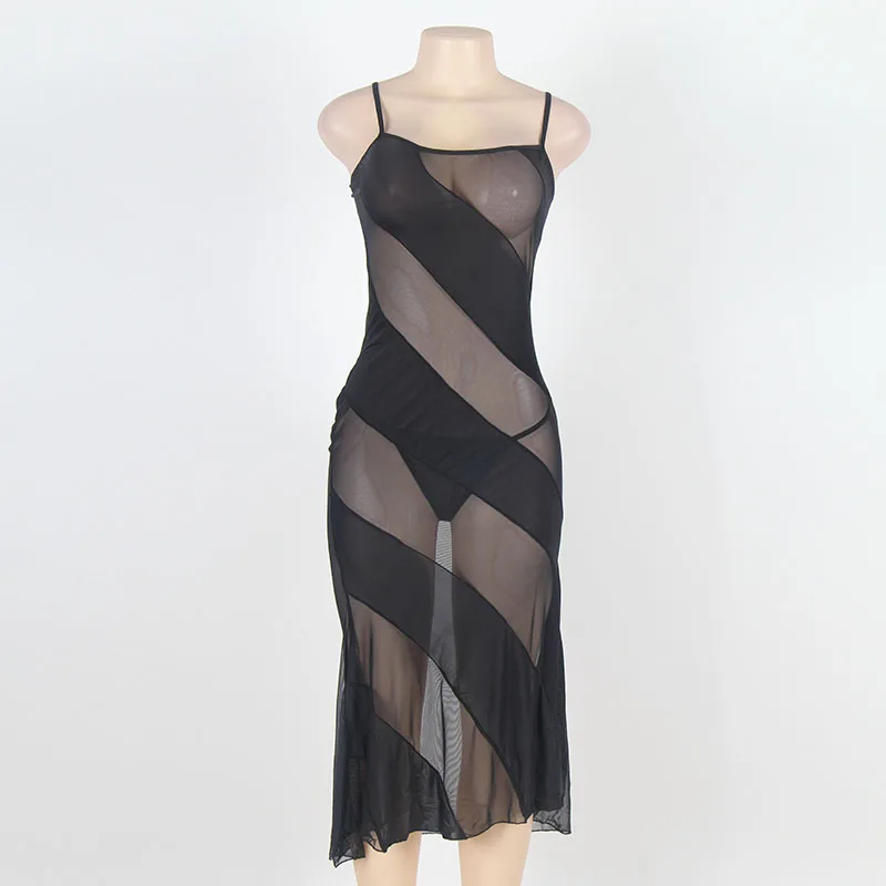Сексуальное женское платье-комбинация Comeondear, черное полупрозрачное платье с подтяжками, Женское ночное платье размера плюс