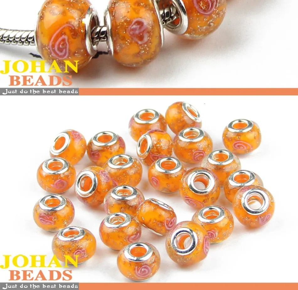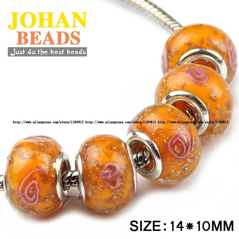JHNBY Европейские Бусины оранжевые 5 мм стеклянные бусины с большим отверстием 10 шт. модные круглые свободные бусины для браслетов ювелирные изделия своими руками