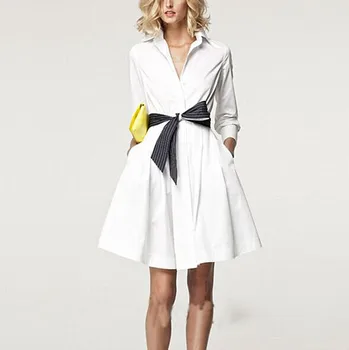 Женское офисное платье, белое модельное платье-рубашка, модель ND129 на лето и осень, 2018 icon star icon star icon star icon star icon star