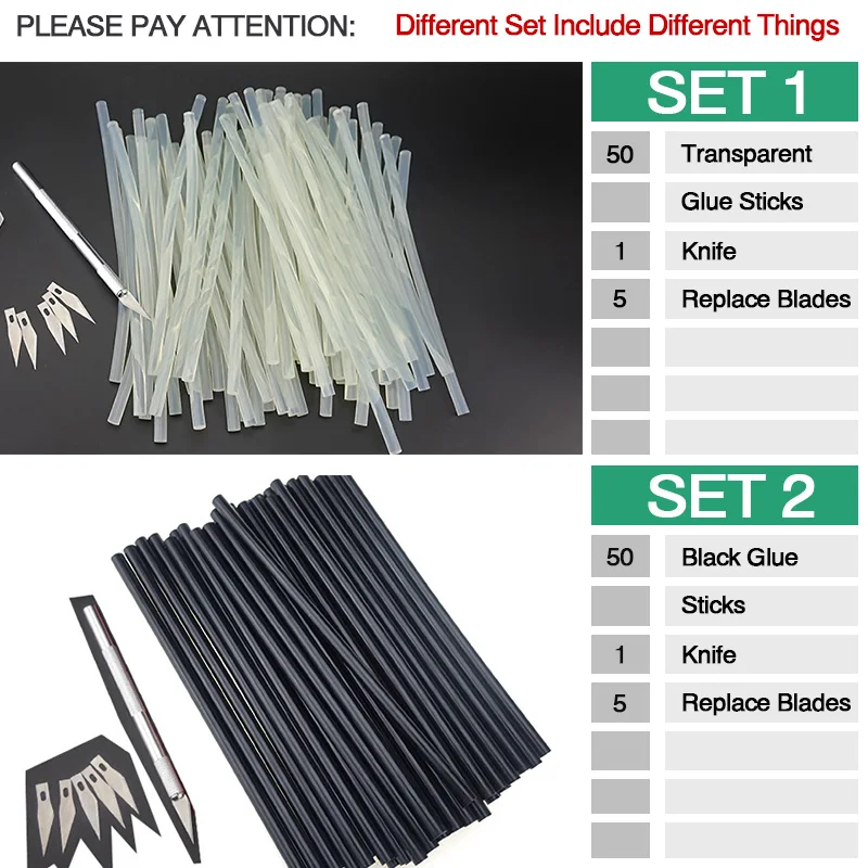 ставлю 4 звёзды, потому что заказ пришел не в полной комплектации. Заказывала набор 14+15+15, а пришло 14+13+13. Не доложили по два стержня прозрачного и черного клея. Но к самому клею вопросов нет. Скальпель отличный! Очень острый и +5 сменных лезвий. Упаковано хорошо, шло долго, но с курьерской доставкой от Мист экспресс.