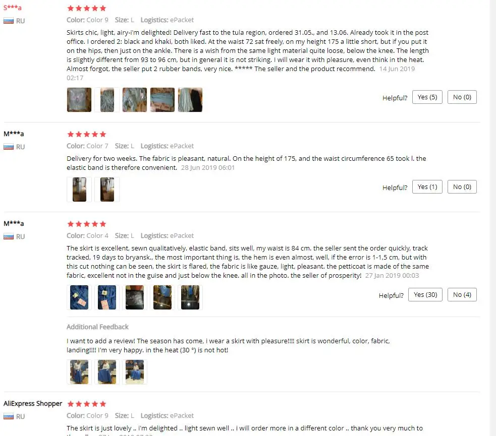 Заказ прибыл на мой дом (Индонезия) около 52 дней. Но это не имеет значения, потому что материал действительно хороший, швы аккуратные, продукт относительно дешевый, но высокое качество. Я очень доволен. По сравнению с тем, что нужно найти юбку в торговом центре, по той же цене, трудно найти такой материал. Мой рост 163 см, вес 53 кг, я выбираю размер L. Немного длинная, но хорошо работает на танкетке 5 см/каблуке. Цвета немного отличаются от фотографированных. Но все в порядке. Очень нравится. Рекомендовано.