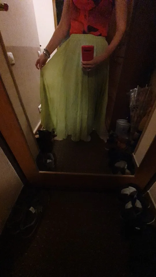 Юбка отличного качества, лёгкая приятная ткань, юбка хорошо сидит, длина до щиколоток, я очень довольна! Посылка пришла быстро