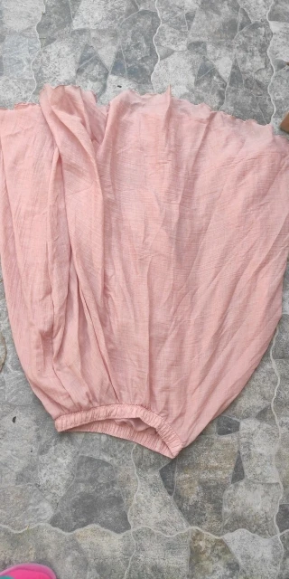Тонкий, хлопковый материал, но не очень просвечивается, так как он имеет несколько слоев. Простой, но красивый.