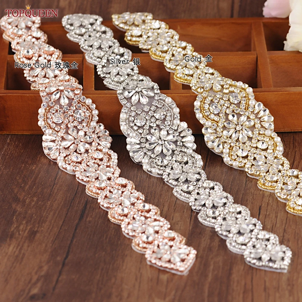 Женские вечерние ремни TOPQUEEN S28, серебристые Стразы с аппликацией для свадебного платья