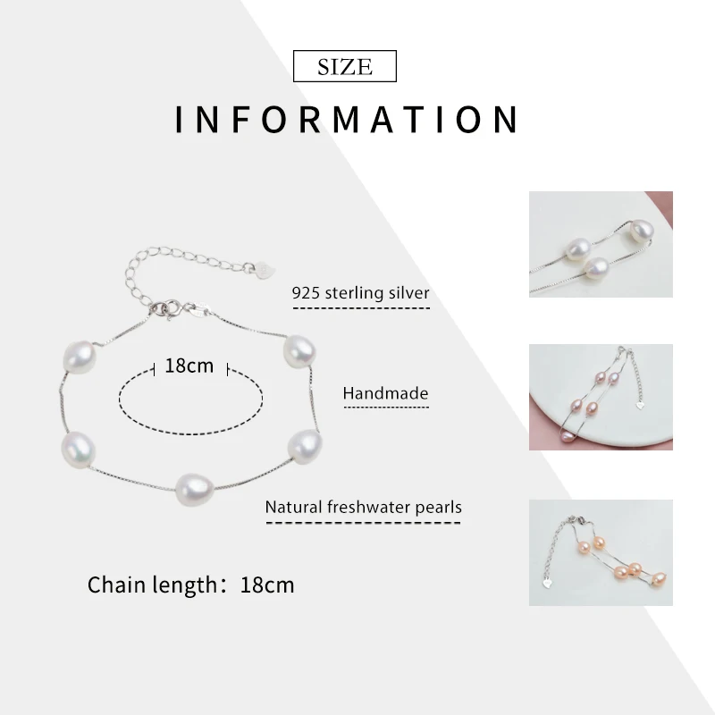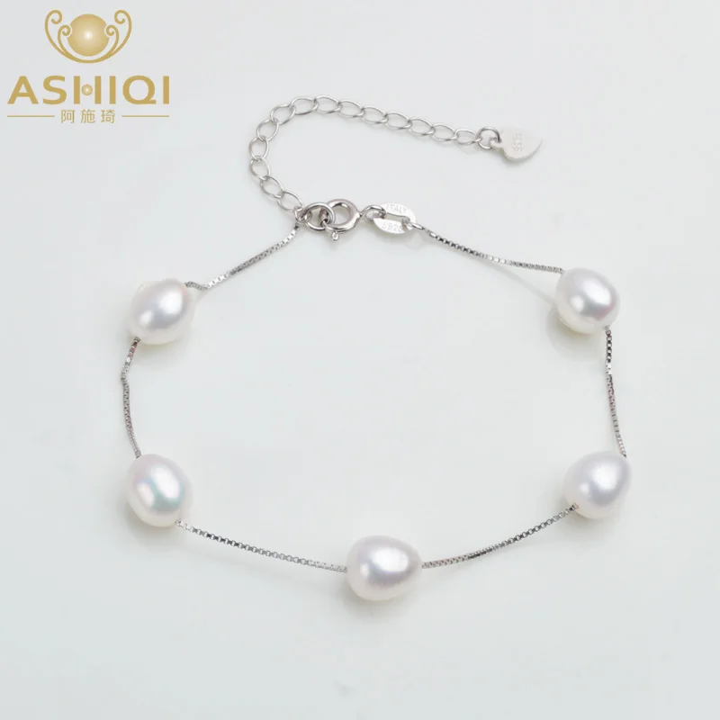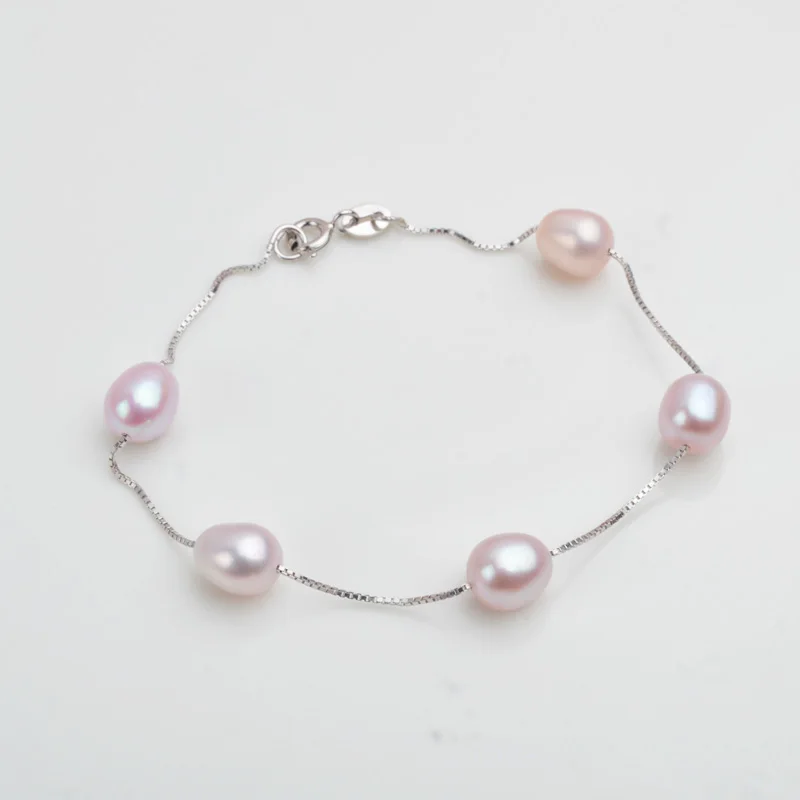 Женский браслет из серебра 925 пробы с натуральным пресноводным жемчугом 7-8 мм, 4 цвета