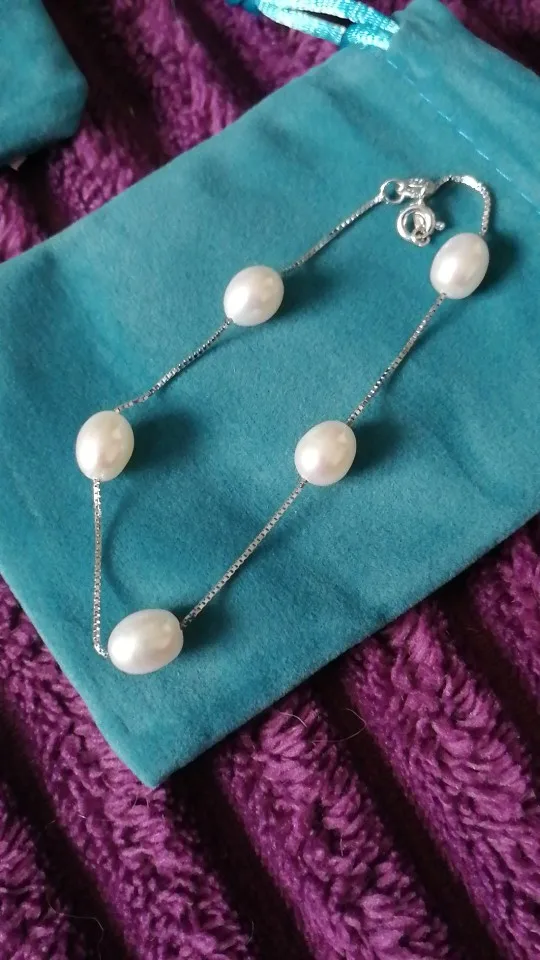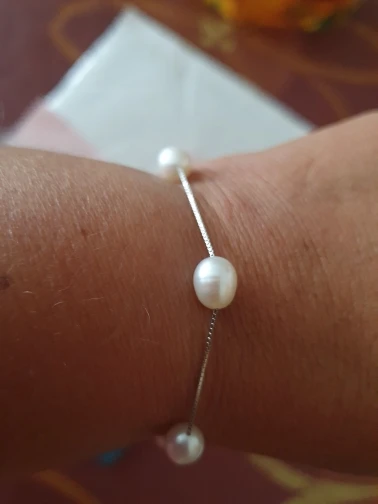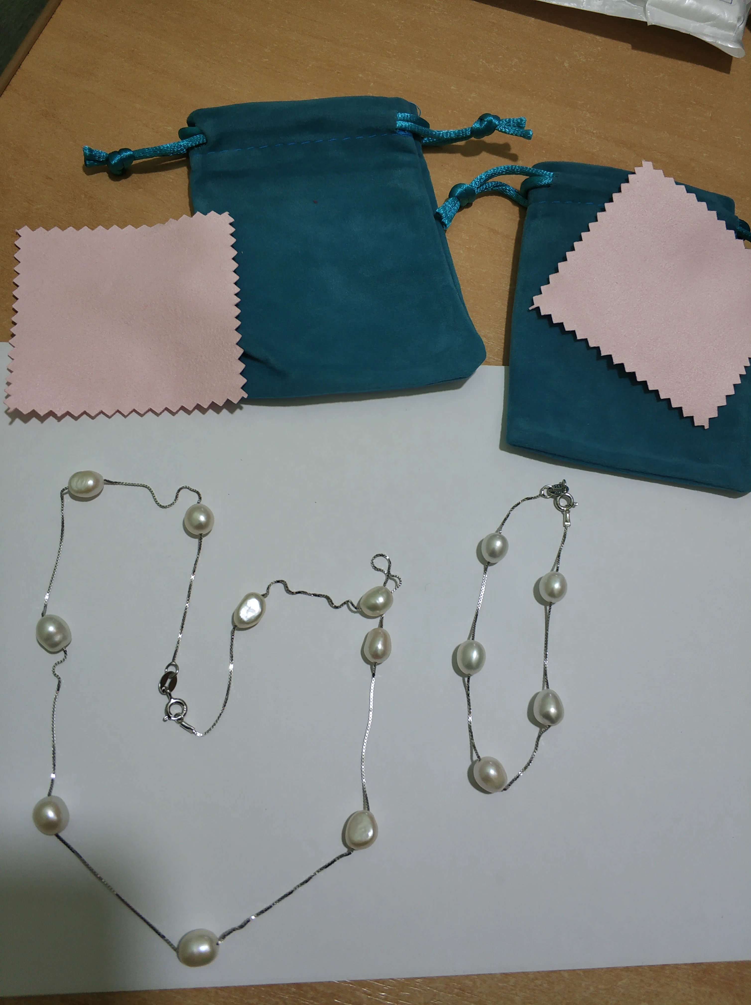 Симпатичный браслет с натуральным жемчугом. Смотрится элегантно. На тонкую руку даже великоват. Цепочка тонкая, нужно носить очень аккуратно, чтобы не порвать. Жемчужины с хорошим блеском, уплощенные с одной стороны. Заказывала вместе с колье. Как всегда велюровый мешочек и салфетка для ухода в комплекте.