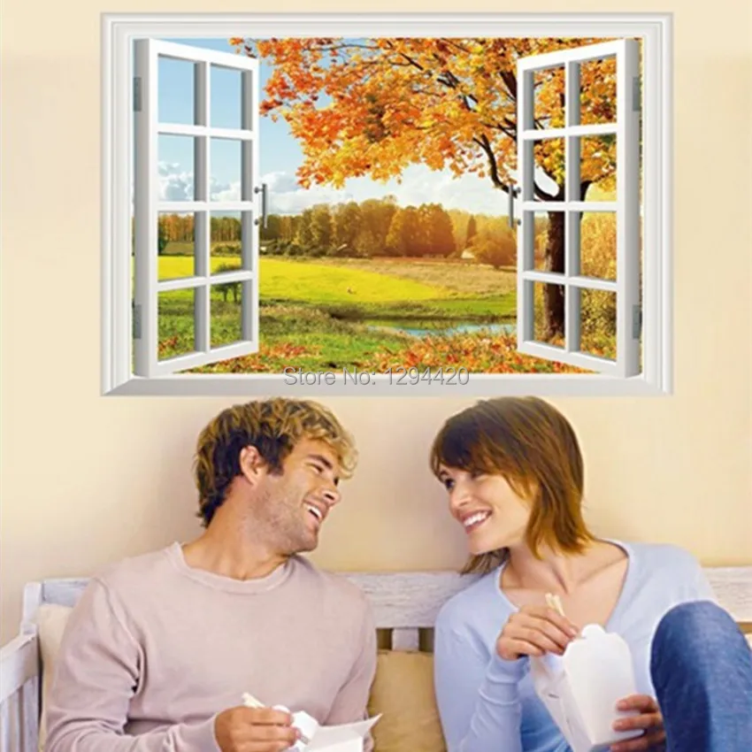За окном сезона поле декорации Золотая осень 3d Виниловые наклейки на стену дома, декорация для дома и отеля пейзаж обои 90*60 см