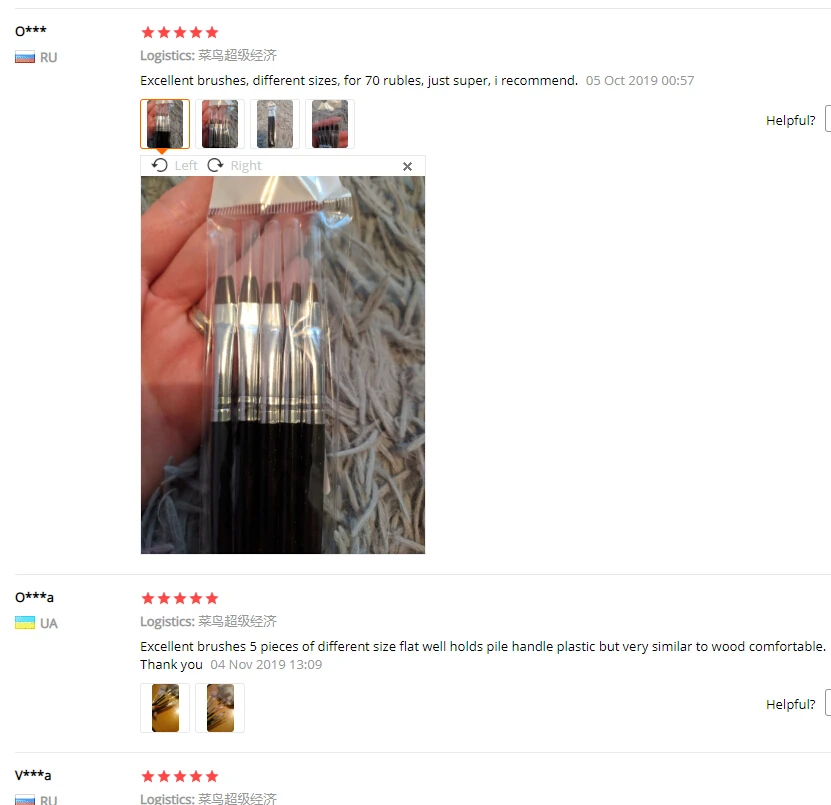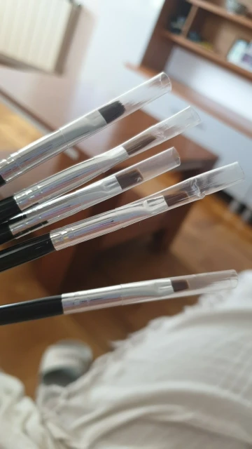 девочки заказывайте! кисти мне пришли примерно за месяц. мне работать имя очень нравится! не пушатся не выпадывает! рекомендую!