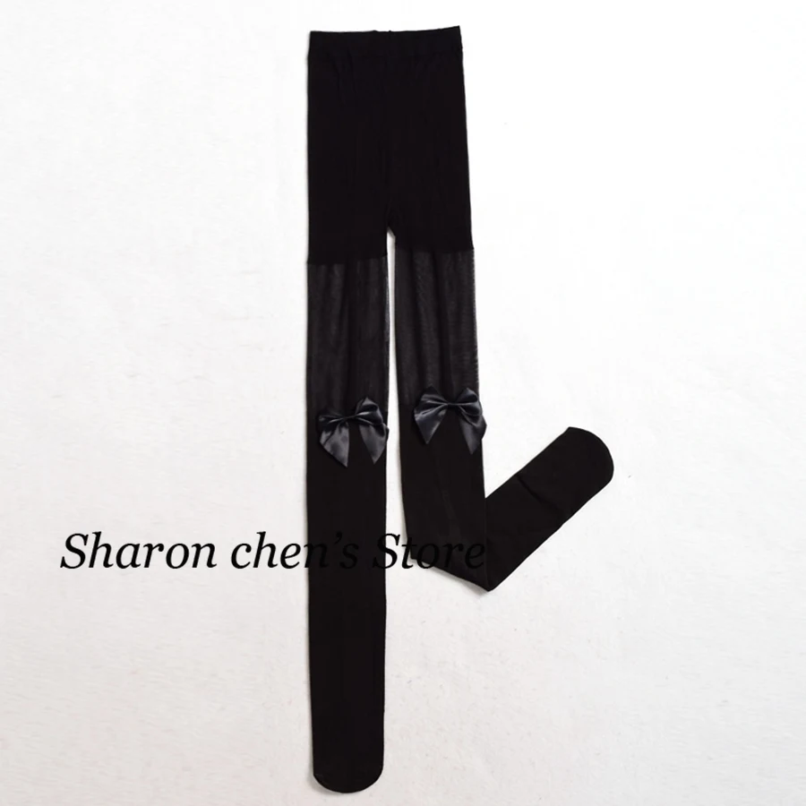 Лолита Лук подтяжк Трико Япония Стиль Белый бархат татуировки Мок чулки Sheer колготки