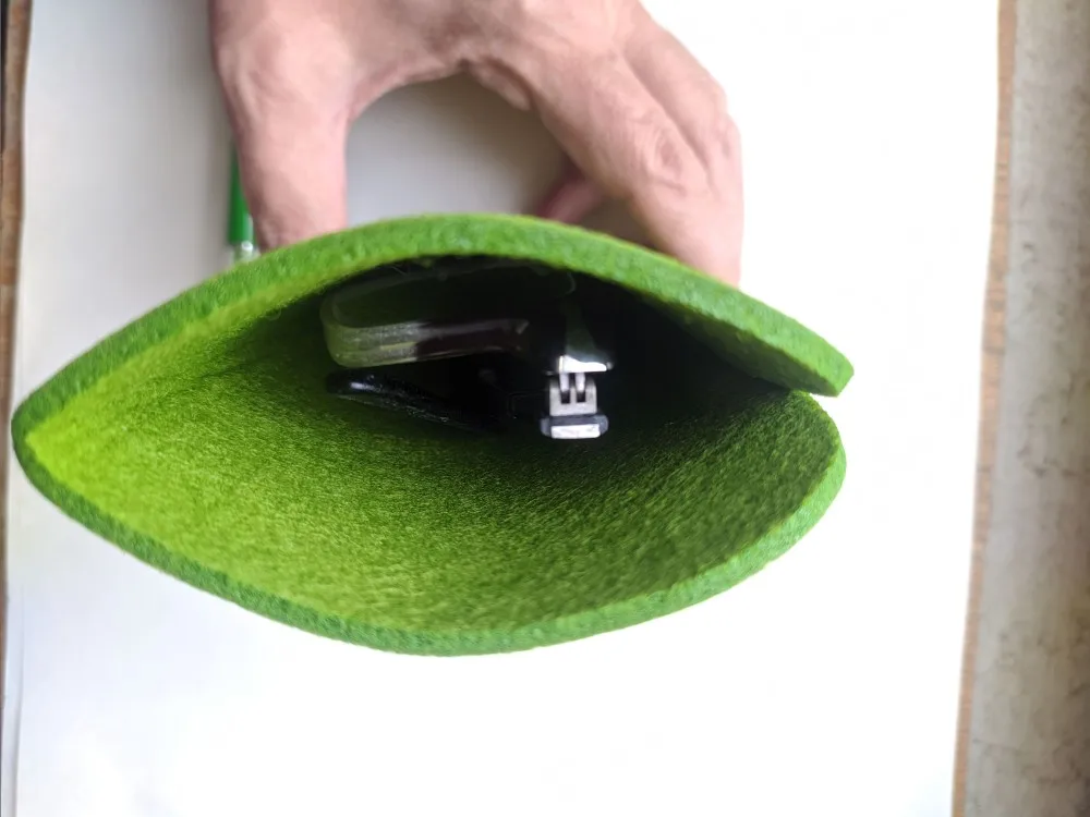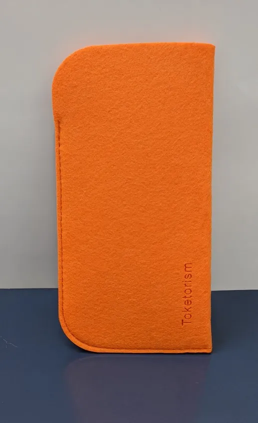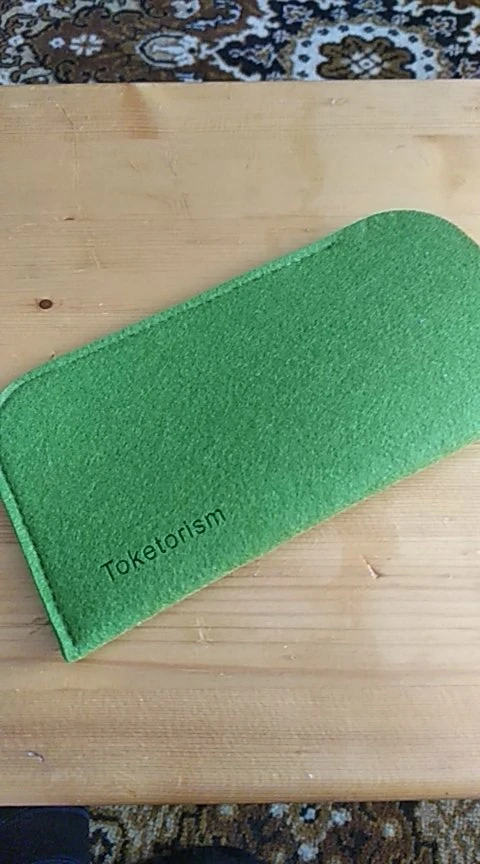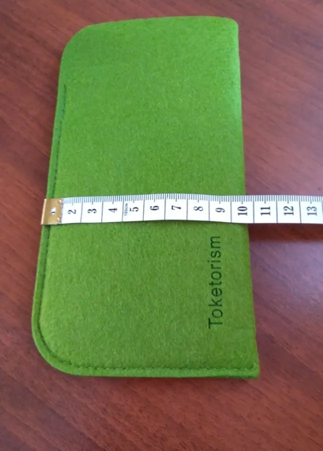 Большой чехол для очков. Для понимания: в него влезает мой лопатофон Poco X3. Фетр твердый, очки расплющиваются под давлением чехла. И мне почему-то казалось, что надпись – это копирайт продавца, но нет, уникальный дИзАйН 12 кеглем выжжен на фетре чтоб наверняка.