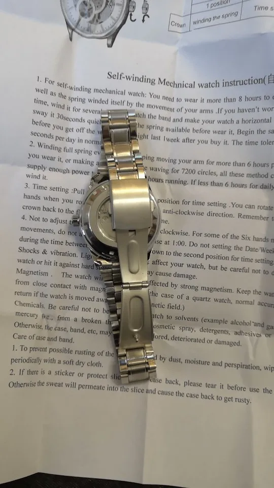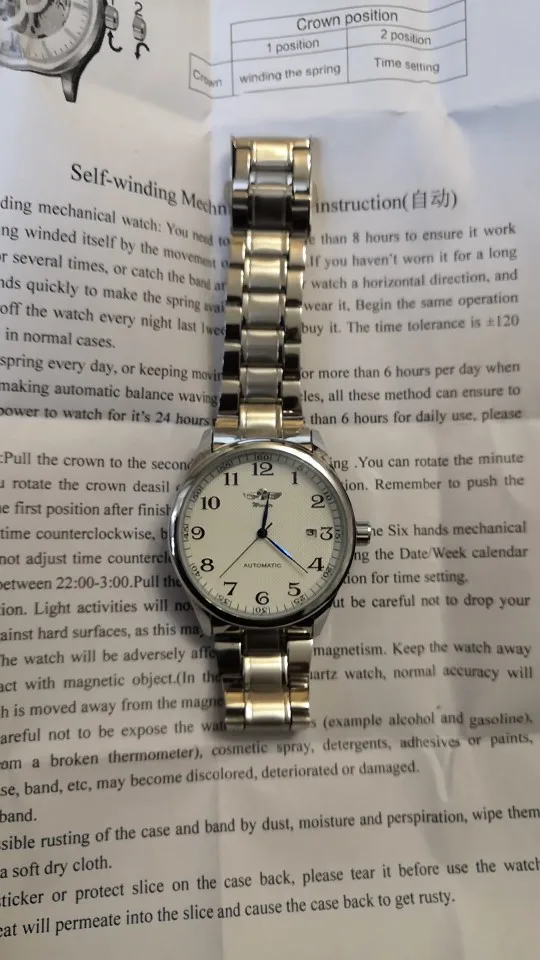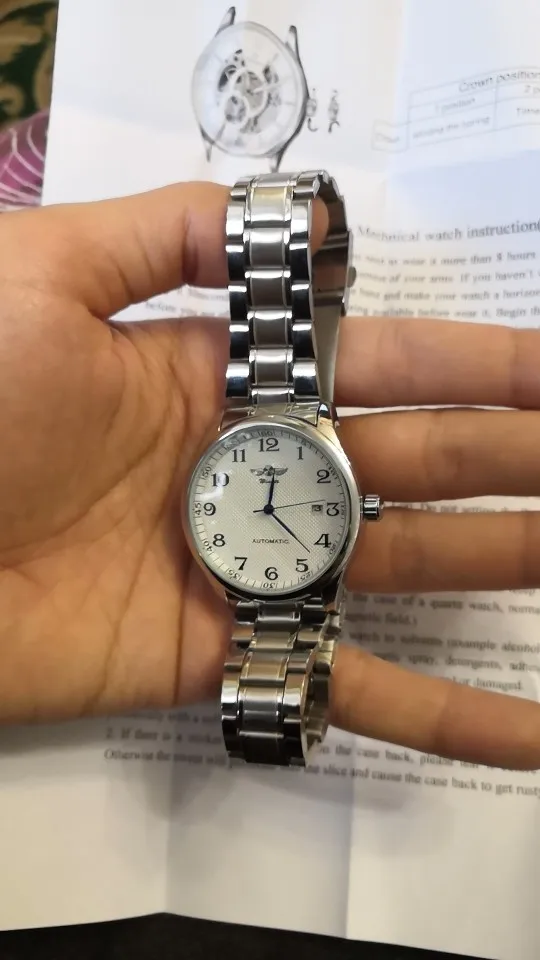 Часы супер, завёл один раз при получении, выставил дату. Неделю ходят, хватает автоподзавода. Ремешок великоват, выкинул по 2 звена с каждой стороны.