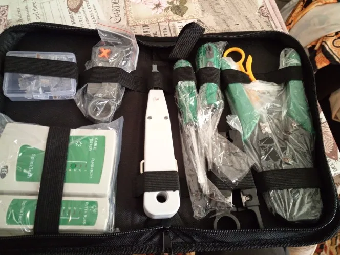 Хороший набор. Обжал пару кабелей - всё отлично, ПВХ зажимает нормально, как и проводки. Жёлтый резак очень удобен в работе, как и лезвия на ручке кримпера. Для работы тестера нужна 6LR61 (Крона), которой нет в комплекте. Работает он очень просто - с таймингом около секунды даёт сигнал по очереди по всем линиям. Второй режим "slow" делает то же, но медленнее. Товар и продавца рекомендую.