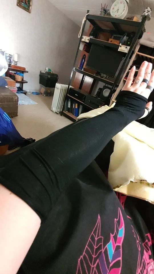 Как в описании. Легкий, мягкий, приятный материал. Длинный. Отверстие для большого пальца может быть больше, но не критично. Я могу порекомендовать.