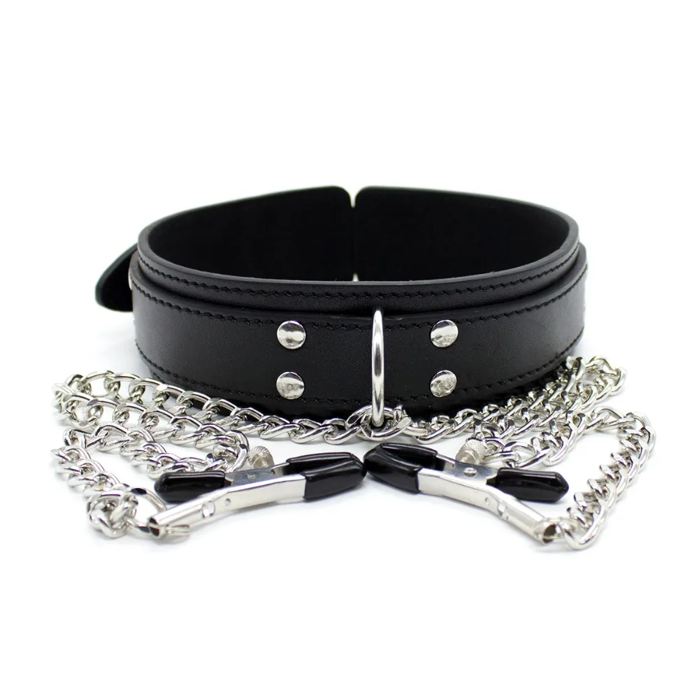 Thierry PU Leanter metal, фэнтези, кожаный ошейник с зажимами для сосков, бондажное Эротическое украшение для взрослых, интимные игрушки для женщин