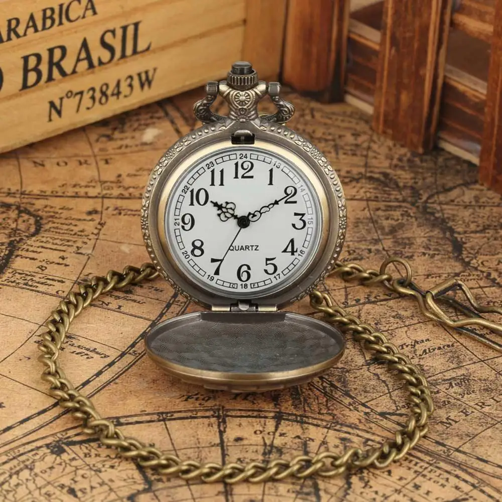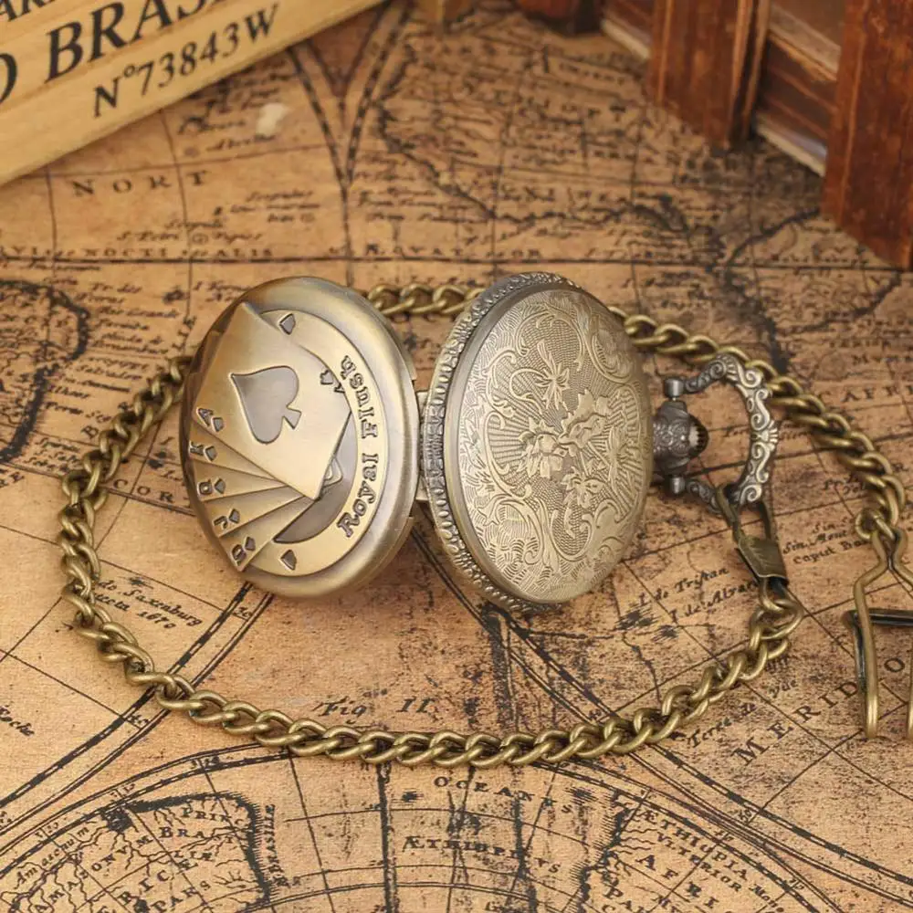Винтаж Ретро Бронзовая Royal Flush кварц Подвеска Брелок карманные часы с Цепочки и ожерелья цепь подарок Лидер продаж часы для Для мужчин Для женщин