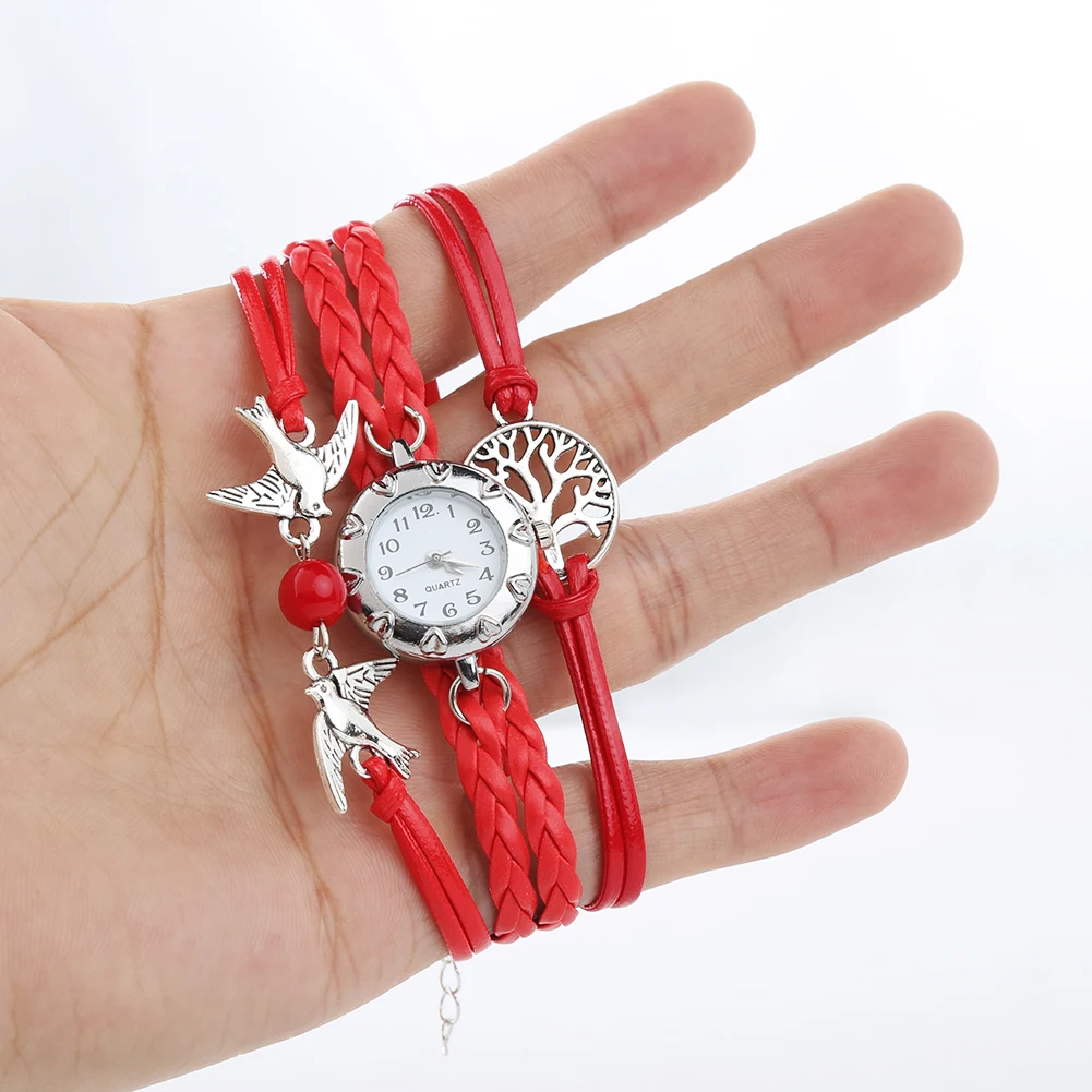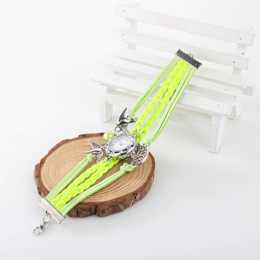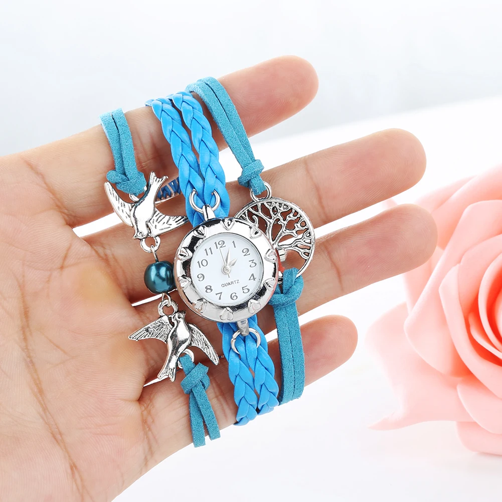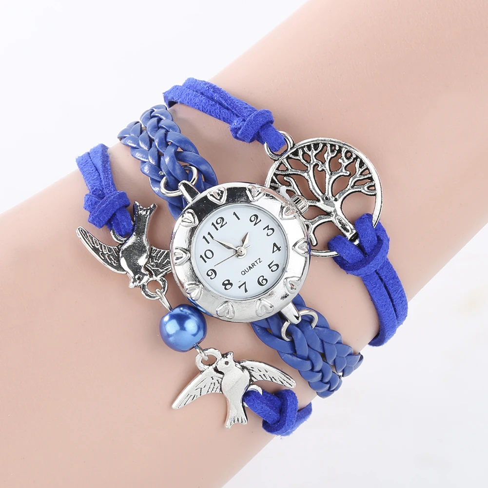 Женские модные часы Reloj, женские кварцевые стены, бусины с птицами, очаровательные Многослойные ретро плетеные браслеты, наручные часы, подарки