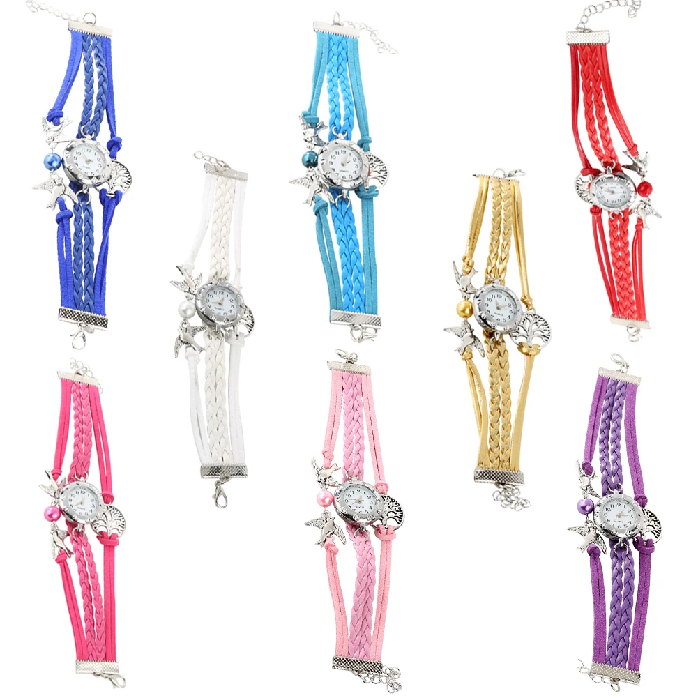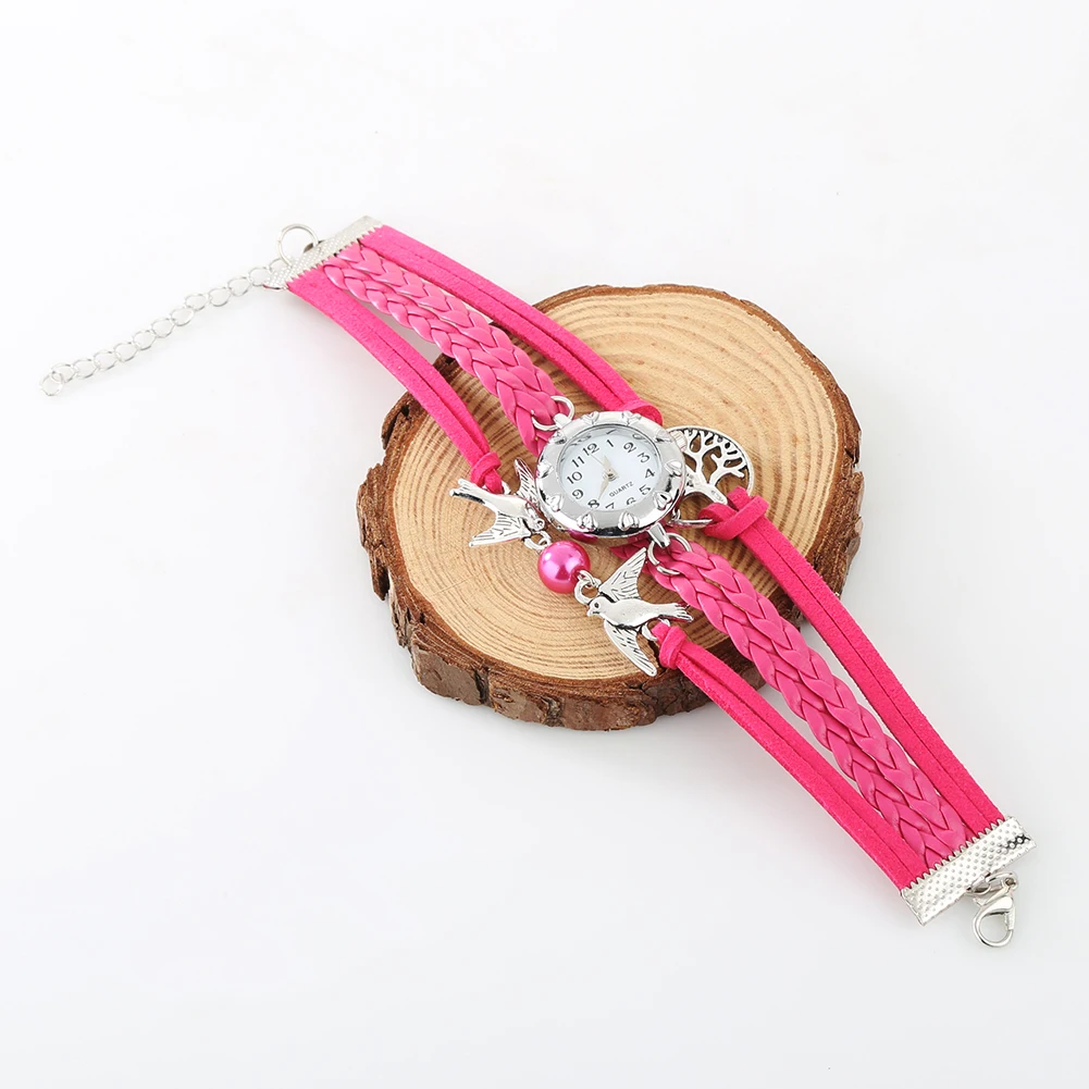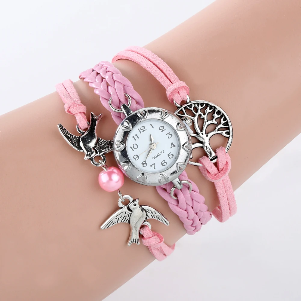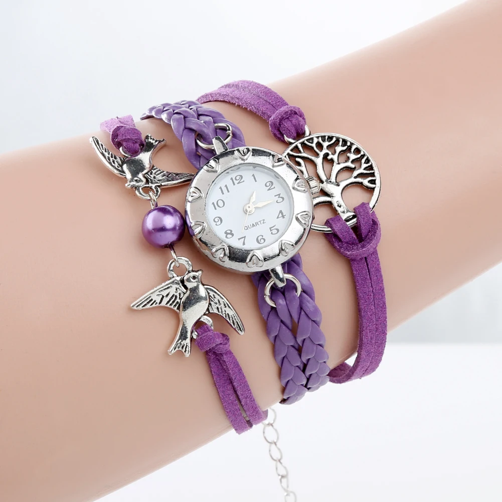 Женские модные часы Reloj, женские кварцевые стены, бусины с птицами, очаровательные Многослойные ретро плетеные браслеты, наручные часы, подарки