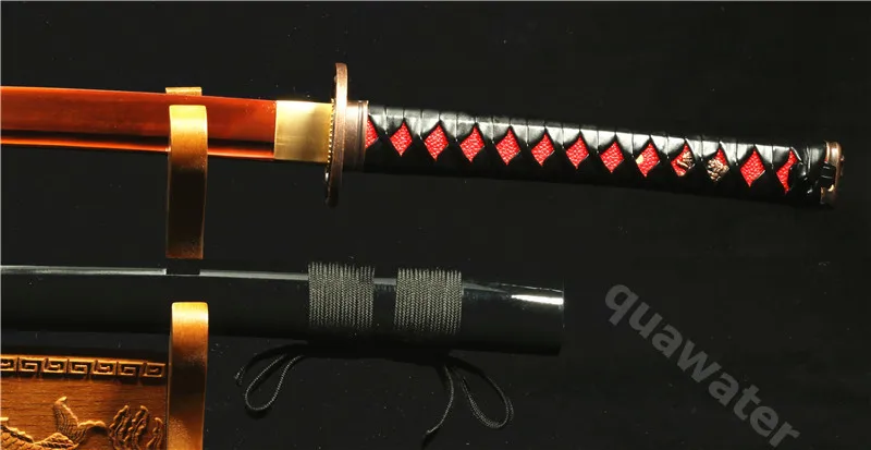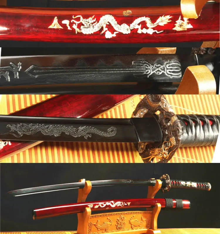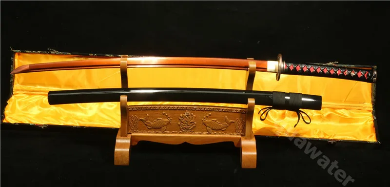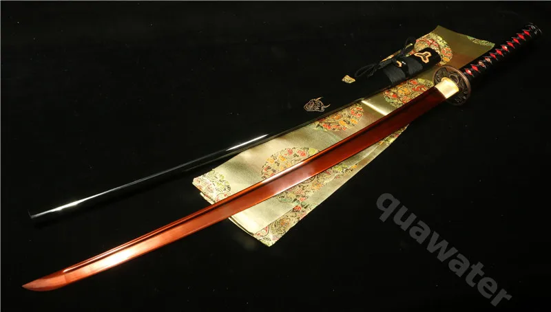 Характеристики:Все длина: 103 см/40,5 дюйма Материал ручки: деревоДлина лезвия: 73 см/28 дюймов Tusba Материал: VallyДлина ручки: 28 см/10 дюймов Ширина лезвия: 3,2 см/1,6 дюйма-2,3 см/0,9 дюймаSaya Длина: 76 см/30 дюймов Вес (с saya): 1,4 кгМатериал лезвия: 1095 углеродистая сталь Красный Вес (без saya): 1,2 кгSaya Материал: деревоСостояние: новоеBo-hi: с кожей bo_hi Ray: натуральнаяНастоящая кожаЭта Катана изготовлена из древнего японского метода изготовления (Ручная ковка и ручная полировка). Мы-производители мечей из города лункван, Китай, который славится тем, что производит профессиональные японские мечи, китайский меч и западные мечи. Мечи готовы к сражению с аутентичными аксессуарами.Лезвие: лезвие изготовлено древними японскими способами, с ручной кованой ручной полировкой и ручной заточкой. Лезвие меча изготовлено из 1095 углеродистой стали. Лезвие заточено несколькими классами острых камней, что делает меч очень острым.Меч-это полное лезвие Тан, и его tuska (ручка) имеет две бамбуковые прищепки, что делает меч очень крепким и готовым к бою. Меч может нарезать Тан. Который усиливает силу во время использования, отрезает бамбуковый размер бутылки.