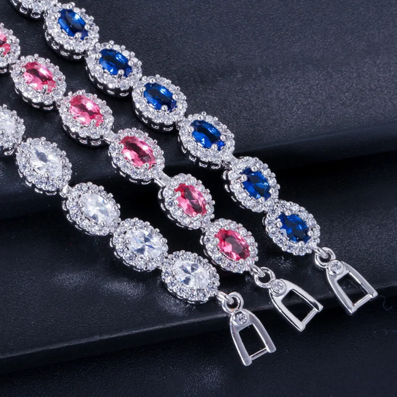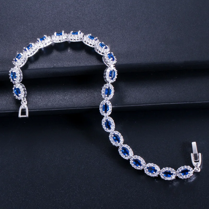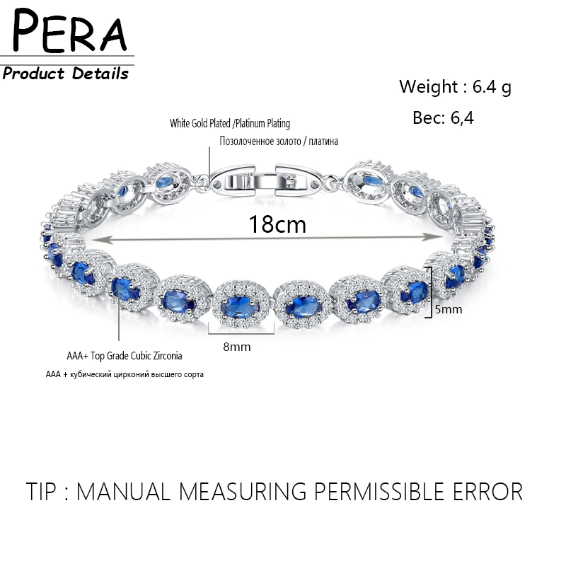 Женские браслеты-цепочки с овальными звеньями Pera, летние ювелирные украшения серебристого цвета с темно-синим кубическим цирконием, B070