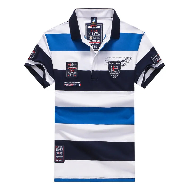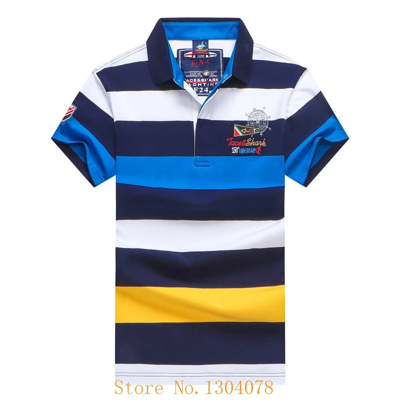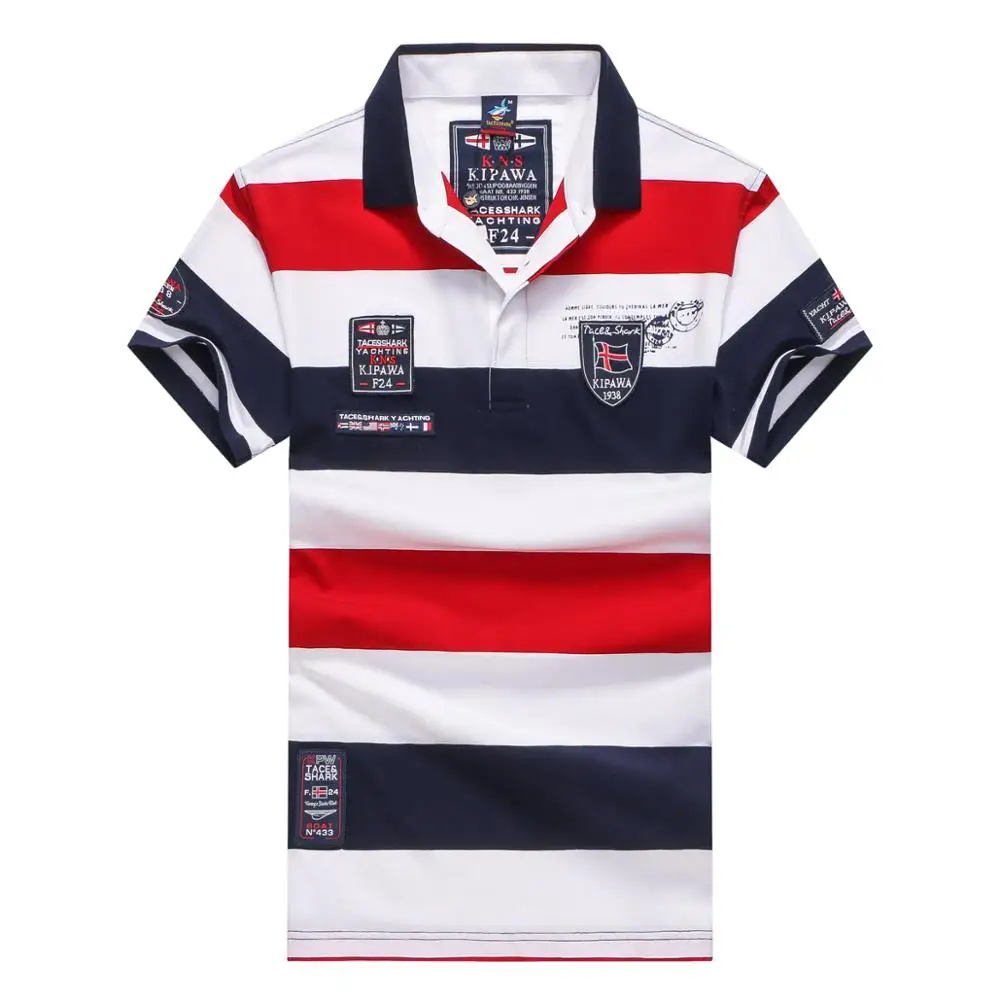 Рубашка-поло Tace Shark Мужская с коротким рукавом, брендовая сорочка в полоску, с отложным воротником, топ с вышивкой, деловой Повседневный стиль