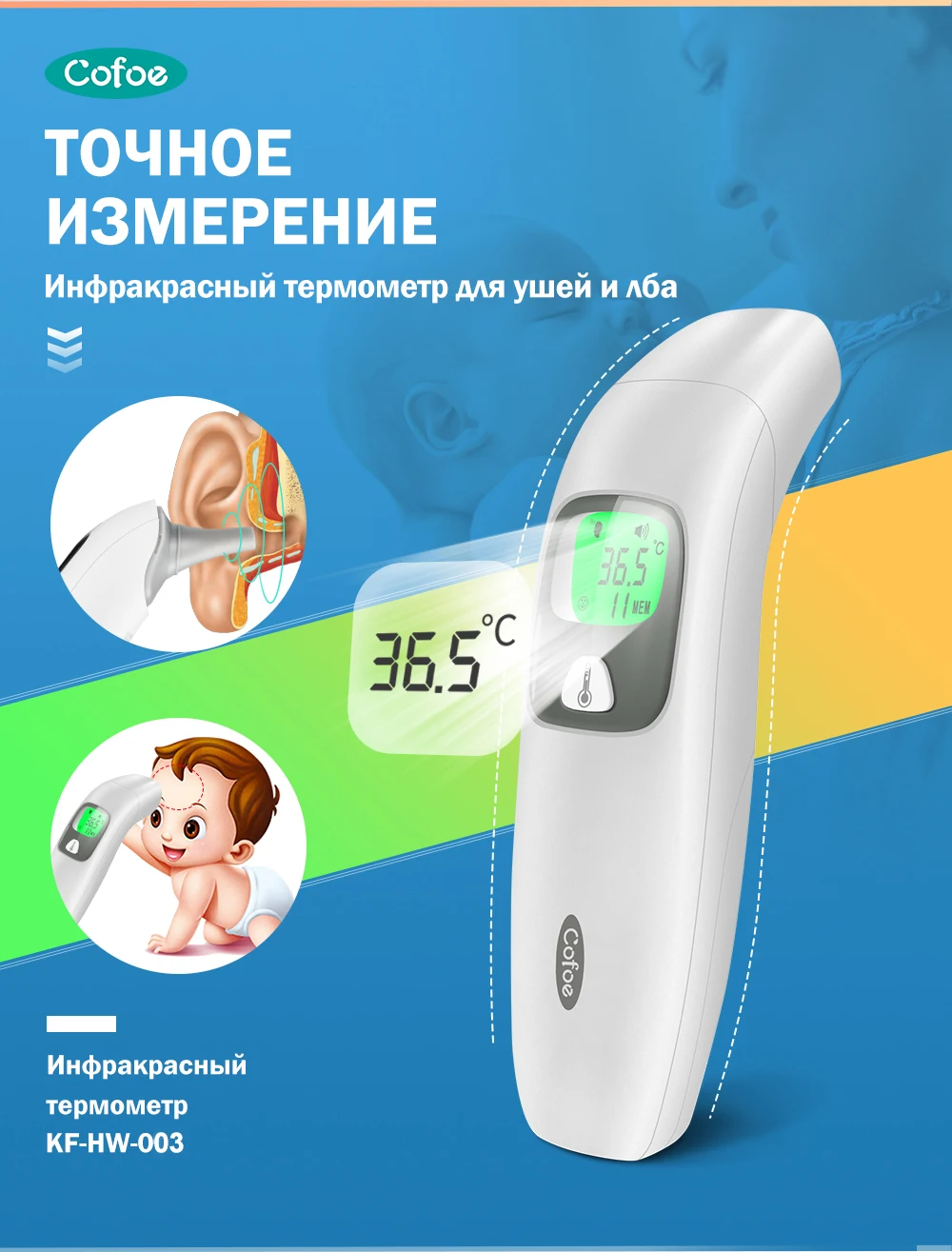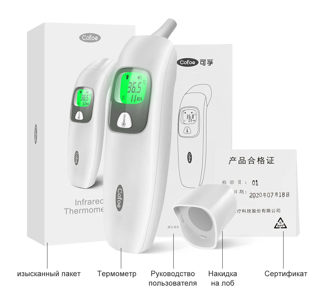 Цифровой инфракрасный термометр Cofoe, Бесконтактный медицинский термометр для измерения температуры тела, температура тела у детей и взрослых