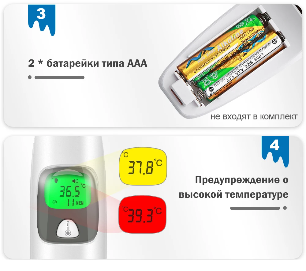 Доставка Почтой России заняла 15 дней. Термометр пришёл хорошо упакованным, без каких-либо повреждений. При первом включении, аппарат не производил никаких измерений и быстро выключался, подумал брак. Оказалось вставил старые батарейки. Поставил новые и эта штука заработала. При первом измерении термометр показал 36.6, что ж неплохо, значит я ещё живой))) Погрешность в сравнении с ртутным ещё не замерял, если будут уж какие-то большие расхождения, дополню отзыв.