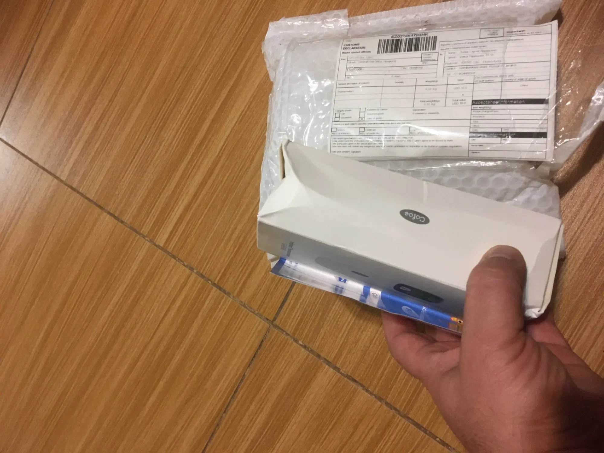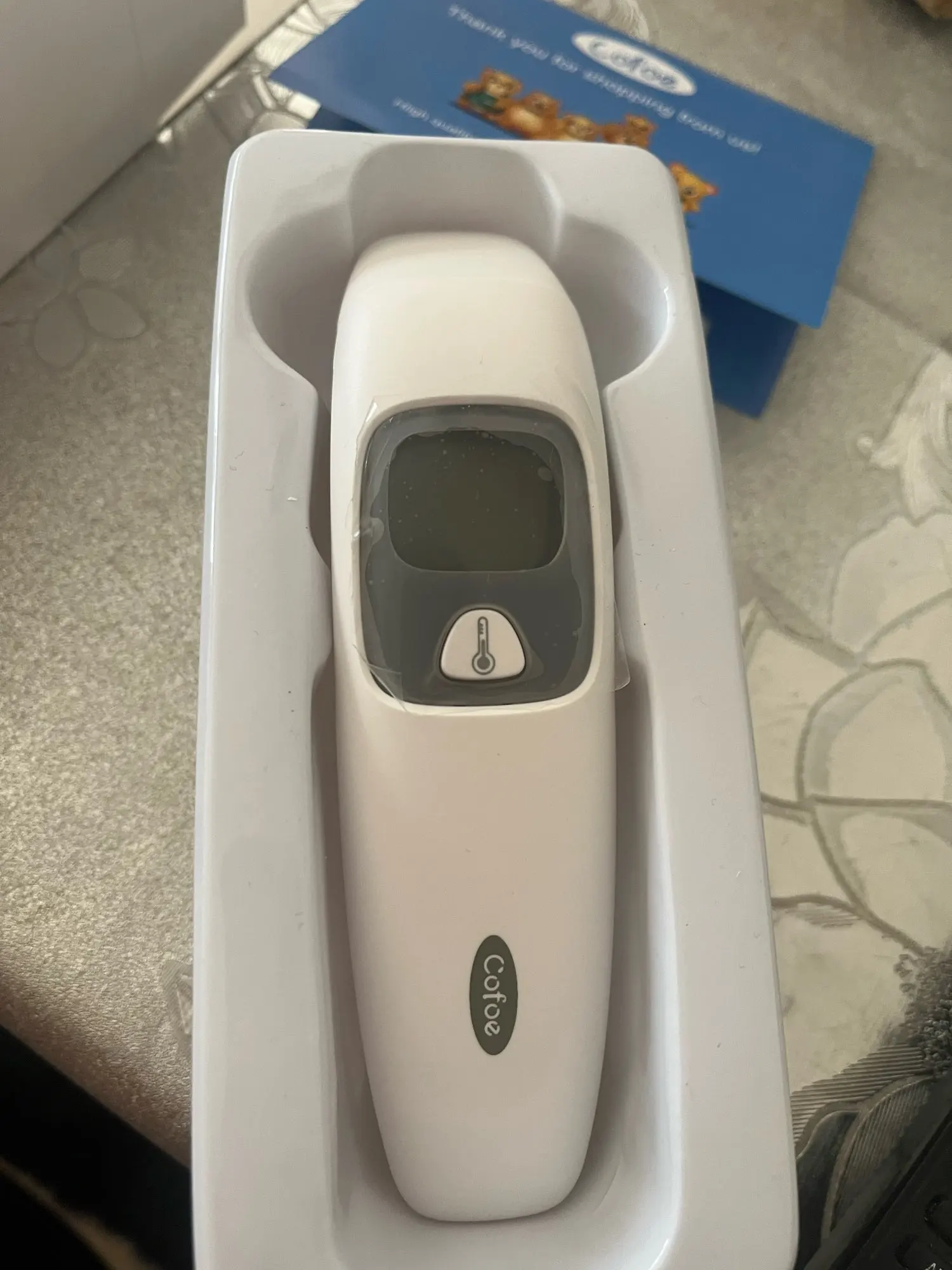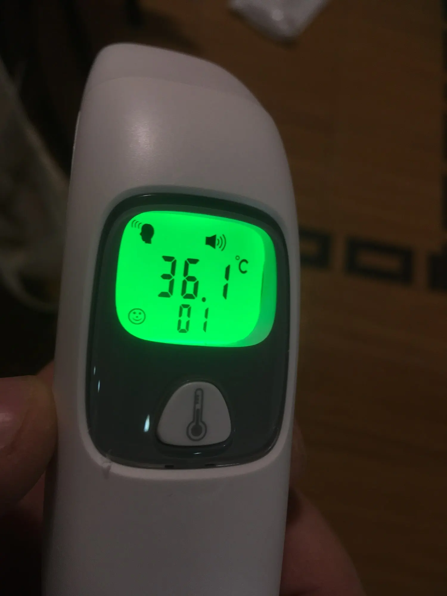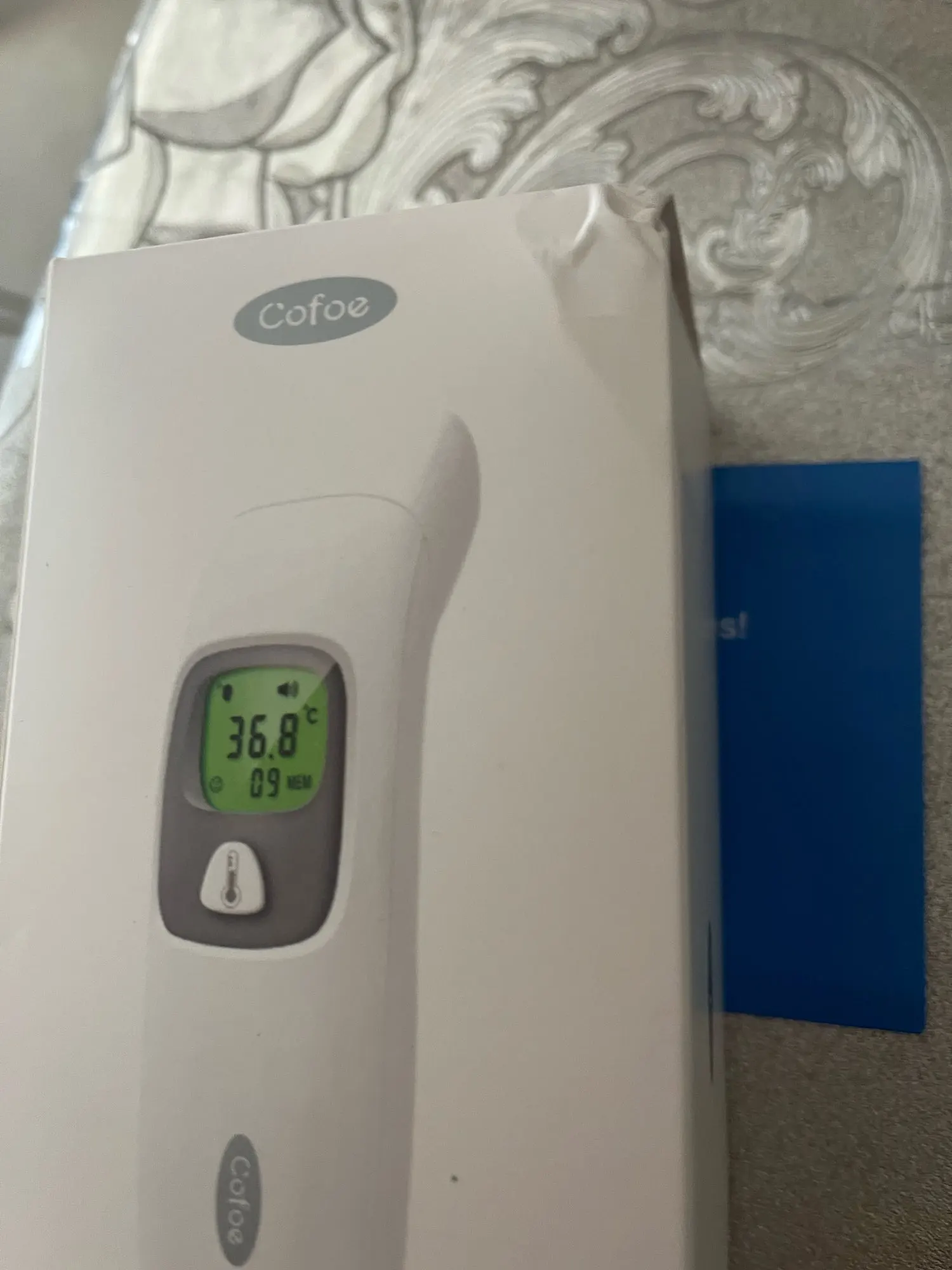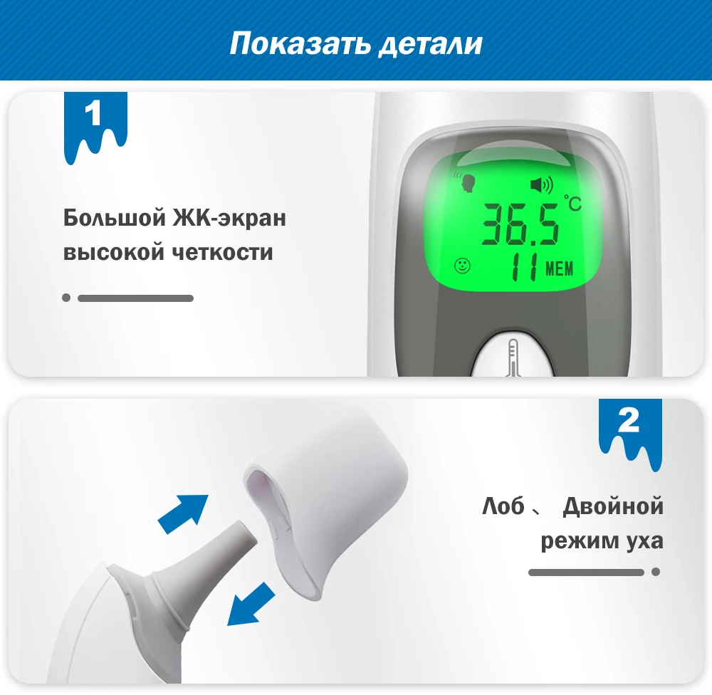 Пришёл очень быстро на удивление, думал будет идти не меньше месяца, на деле пришёл за 10 дней. Внешнее качество на 5+. При снятии колпачка автоматически переходит в режим измерения температуры в ухе. Есть возможность мерить температуру окружающего воздуха. Товаром очень доволен. Рекомендую.