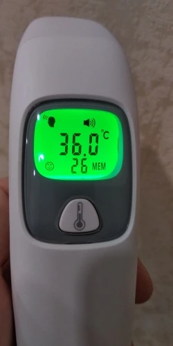 Продавца рекомендую. Заказ обработан быстро и отправил быстро. Доставка до двери почтой России. Слегка помятая коробка - но главное прибор исправен. Провесил показания двумя другими градусниками. Экран цветом и звуком в соответсвии с результатом зелёный / желтый / красный. Автоматически отключается по тайм-аут. Батарейки рекомендую использовать дорогие, качественные. Измерение мгновенное. Для семьи с детьми - очень нужный прибор.