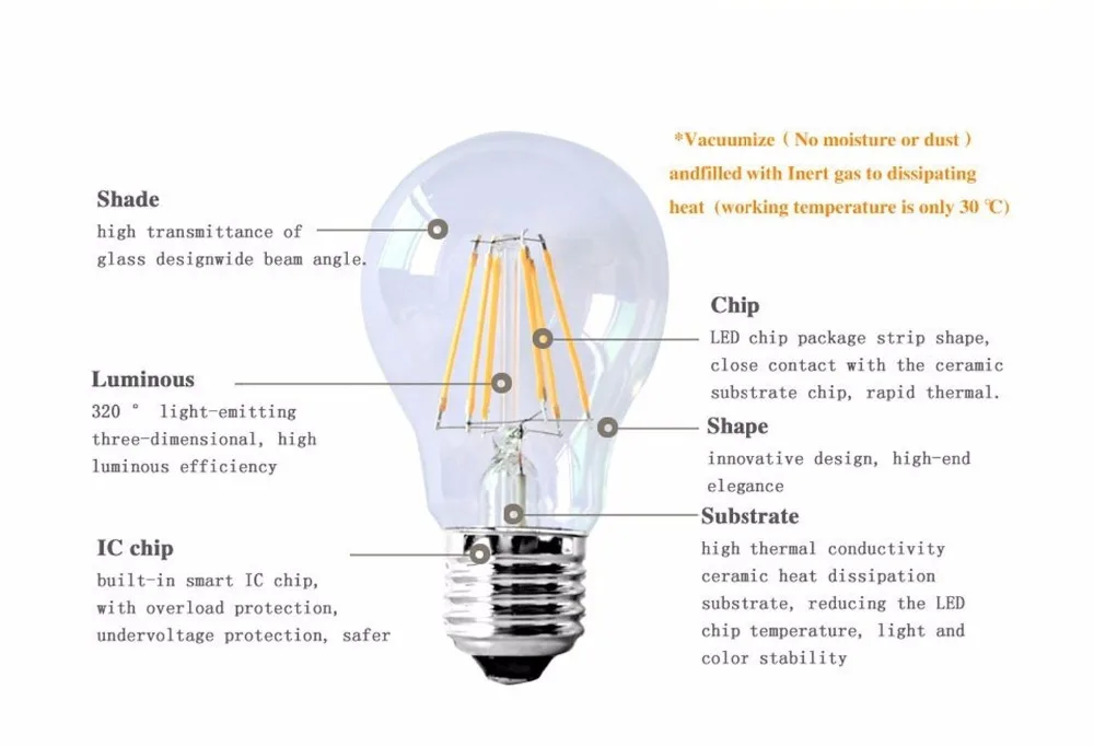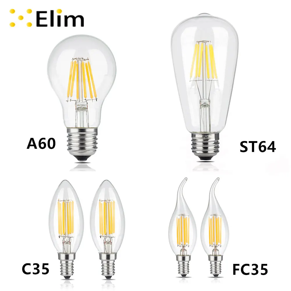 Светодиодная лампа накаливания A60 ST64 C35 FC35 E27 E14, люстра в виде свечи, 2 Вт, 4 Вт, 6 Вт, 8 Вт, 220 В, точесветильник светильник, светодиодсветильник лампа, люстра