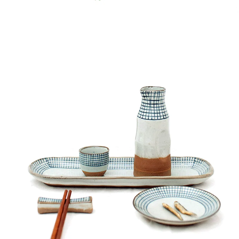 Здравоохранения в японском стиле ради чашки набор застекленные Naive ручной работы керамическая керамика бутылка фарфоровый Саке набор Саке горшок Кубок вина набор вино-чашка