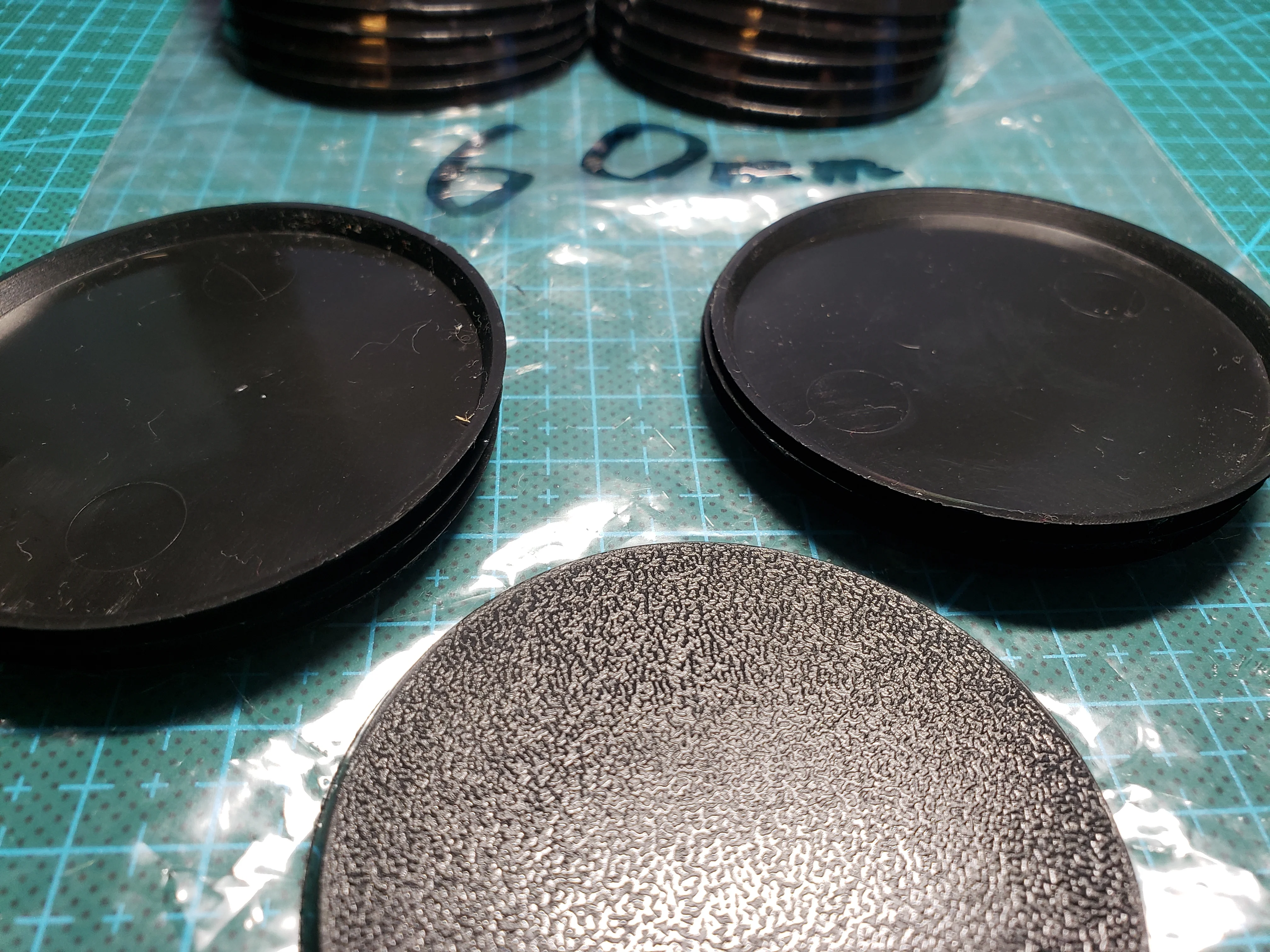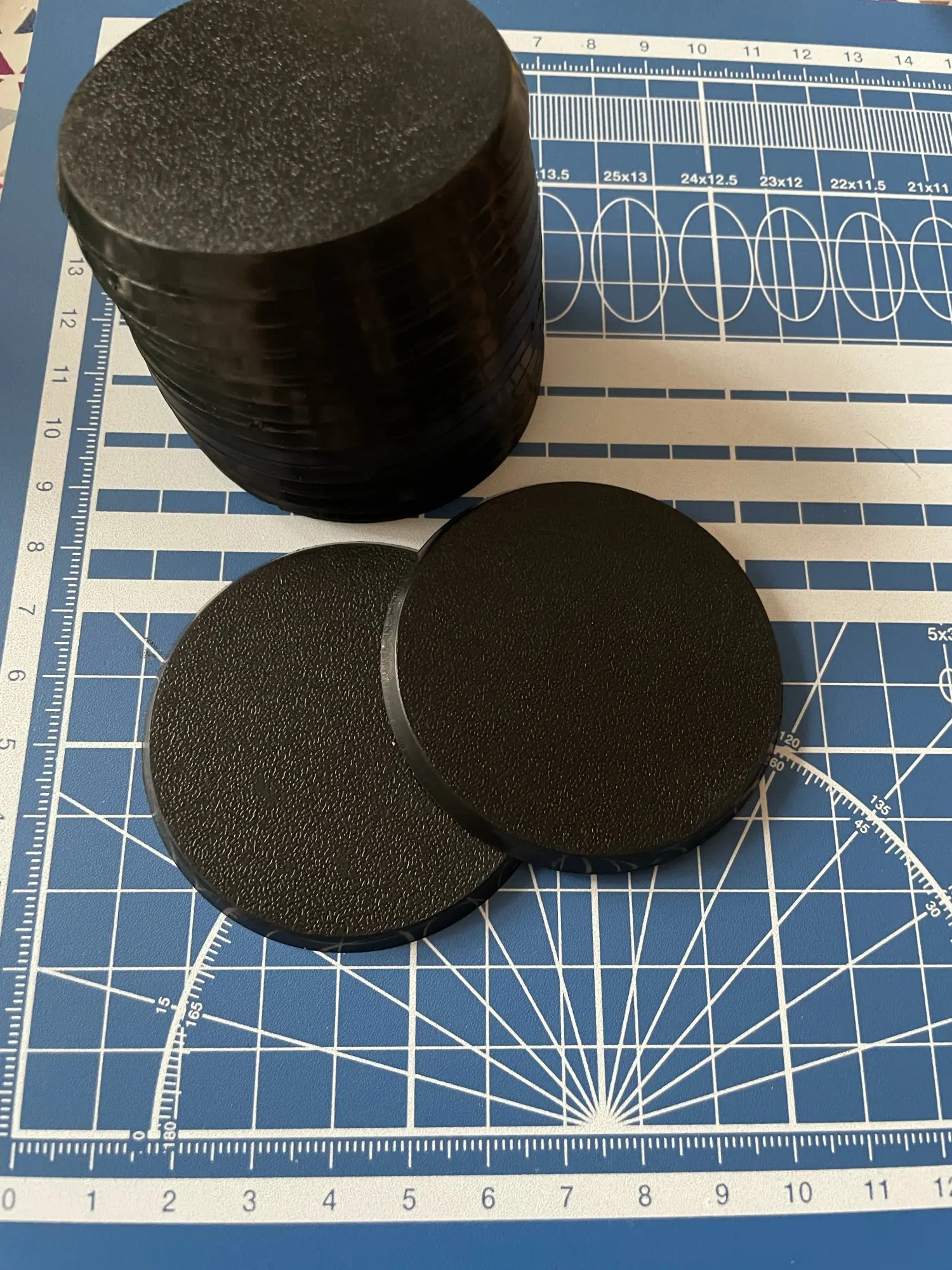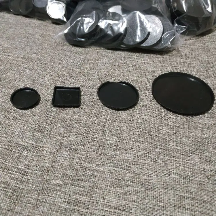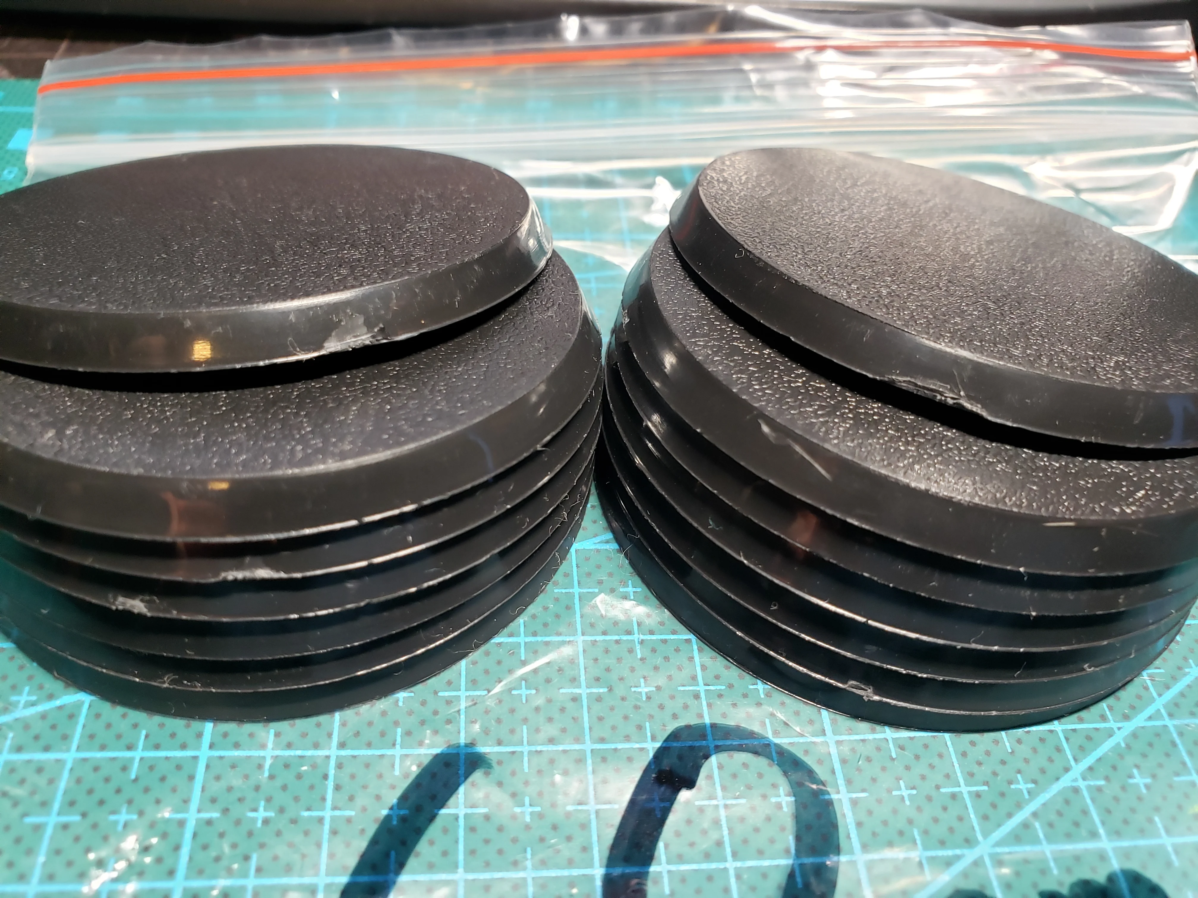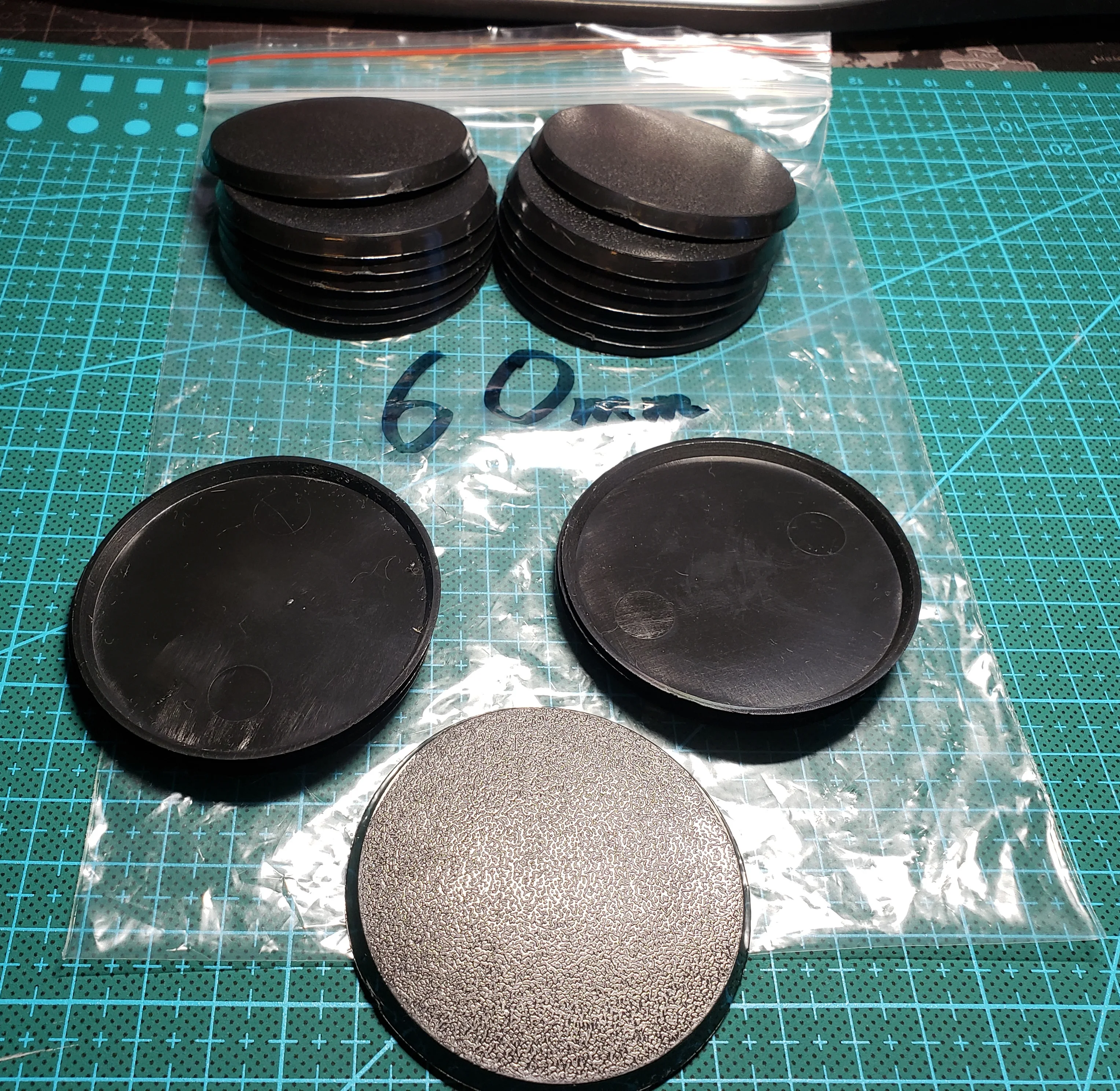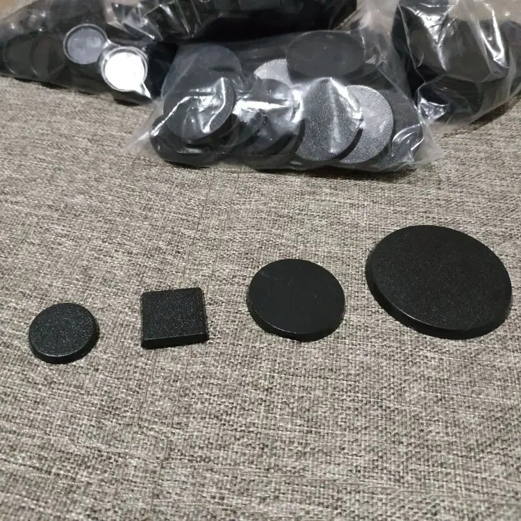 Пластик хороший, плотный. Верх подставки (куда крепится модель) имеет текстуру похожую на искусственную кожу. Доставка 7 дней. Заказывал разные размеры, мелких в пакетах больше на 1-3 штуки, чем указано, а вот 60 мм одной не хватает. 2-3 штуки из всех с дефектами, поэтому наверно больше и кладут.