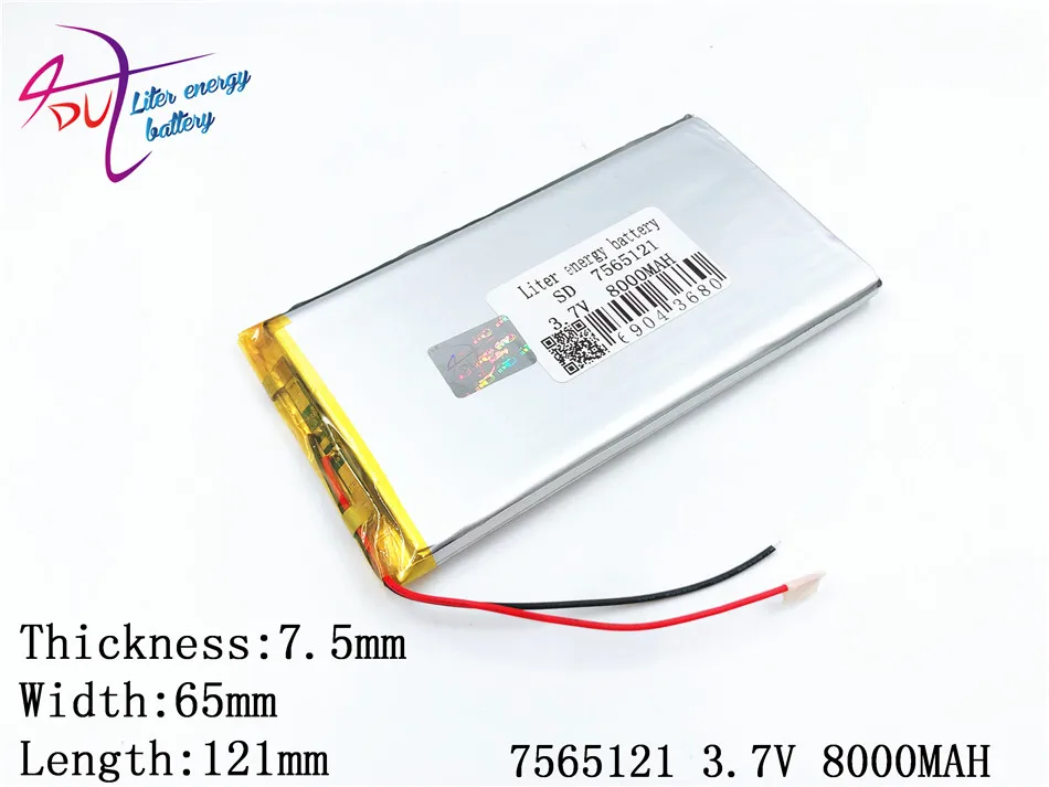 Премиум 7565121 3,7 в, 8000 мАч перезаряжаемый литий-полимерный аккумулятор.