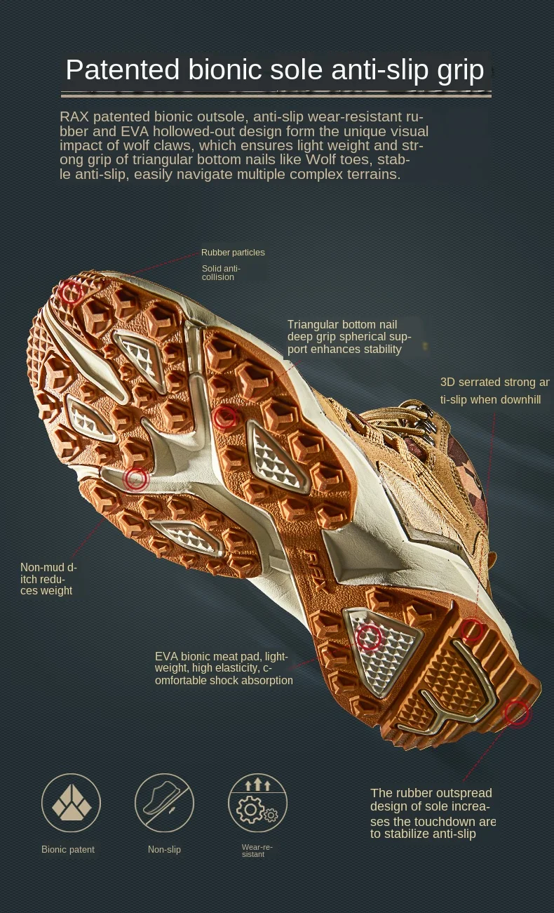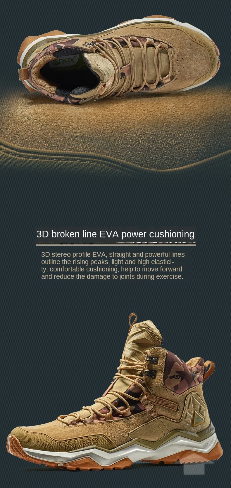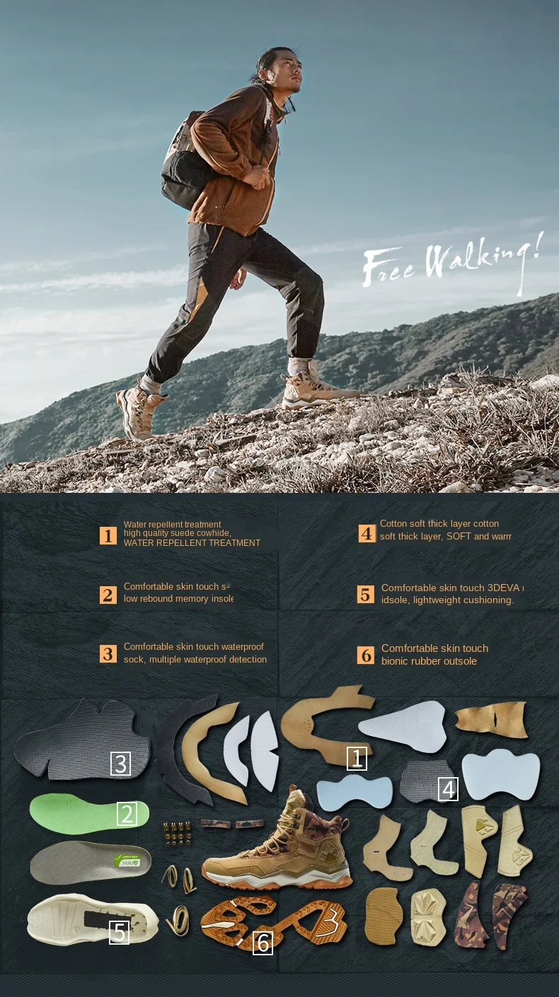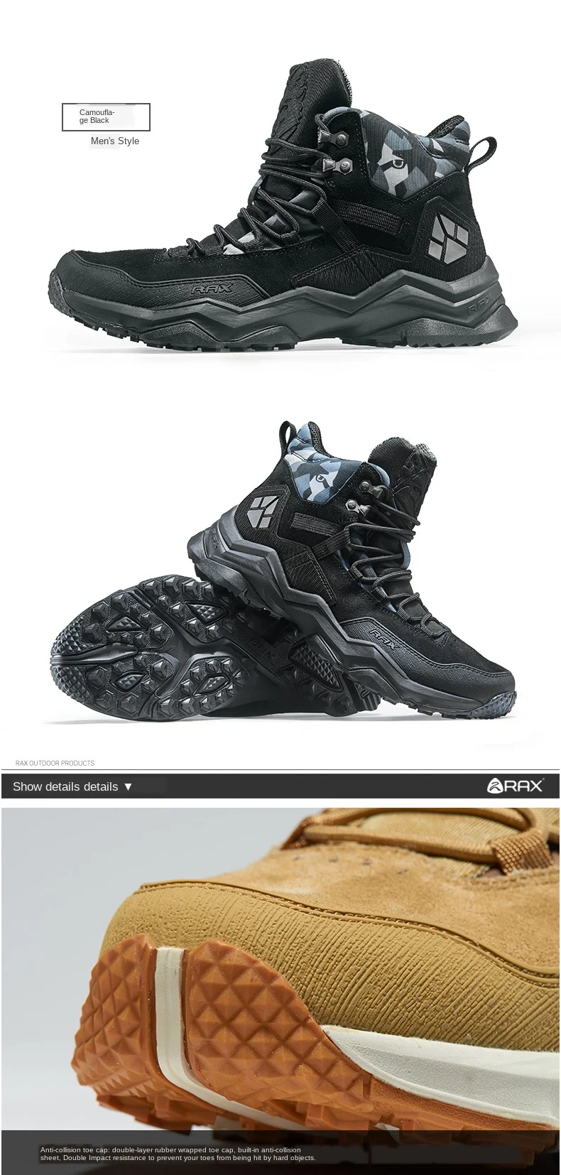 RAXмужские новые уличные походные ботинки Спортивная обувь из натуральной кожи Водонепроницаемая походная обувь нескользящие горные ботинки 63-5B370
