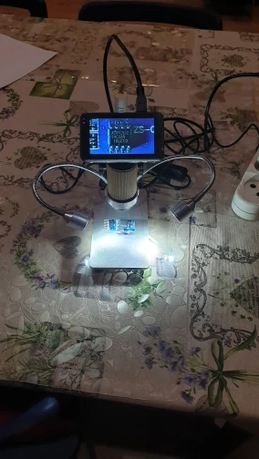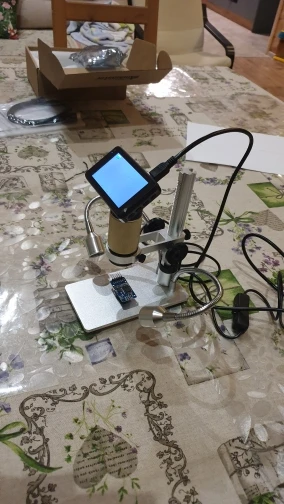 Хороший продукт. Прибыл в течение 2 недель, никаких дополнительных налогов. Легко собрать и настроить. Изображение четкое, ручка фокуса вращается плавно. Большое пространство под камерой отлично подходит для контроля печатных плат. Два фонаря не оставляют темных зон и обеспечивают яркое изображение. Если устройство не используется в режиме выхода USB с компьютером, источник питания может быть упрощен, чтобы иметь один кабель и один источник питания USB 2A, потому что огни используют 0,4 ампер, И дисплей 0,3 а.