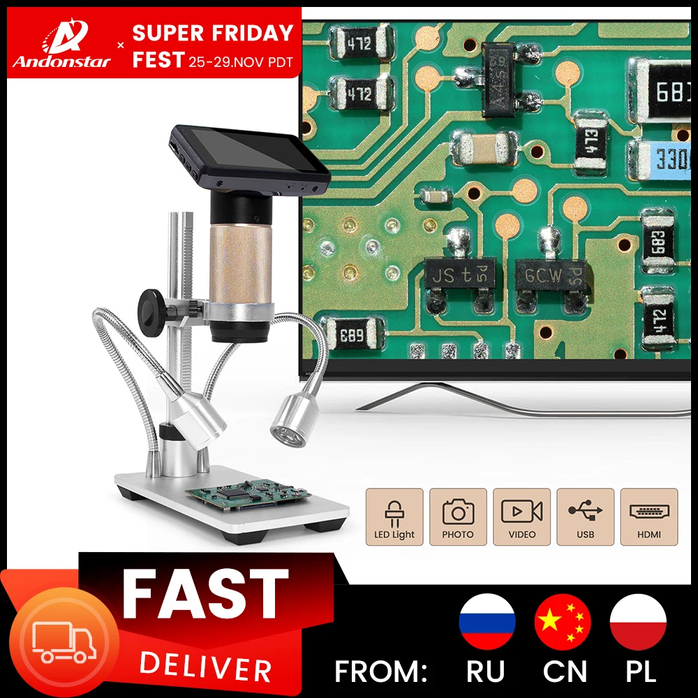 Цифровой микроскоп Andonstar ADSM201 HDMIUSB для пайки, 1080P FHD, на большие расстояния до объекта, для SMD PCB, проверка ремонта сотовых телефонов