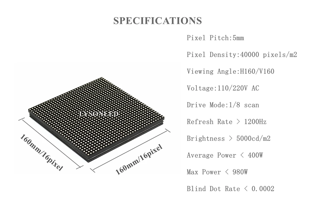 Наружный SMD светодиодный дисплей P5, модуль 32*32 пикселя, размер панели 160x16 0 мм