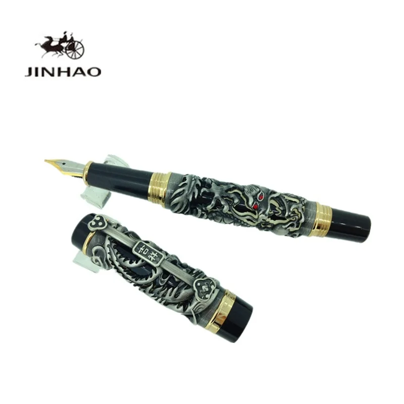Перьевая ручка Jinhao, со средним пером, с рисунком дракона и феникса, с оригинальной коробкой, бесплатная доставка