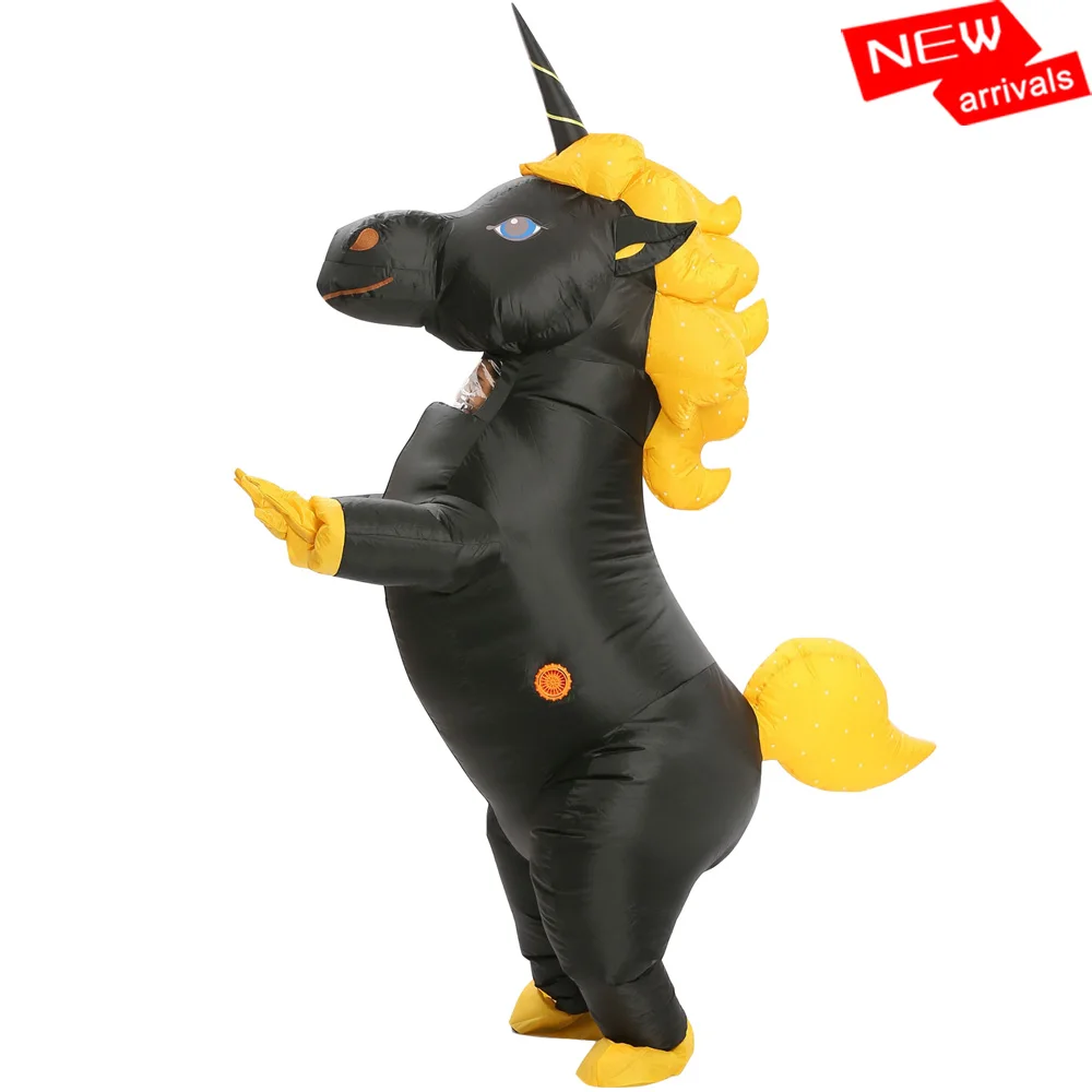 Новое поступление: надувной костюм единорога из черного рога для взрослых
