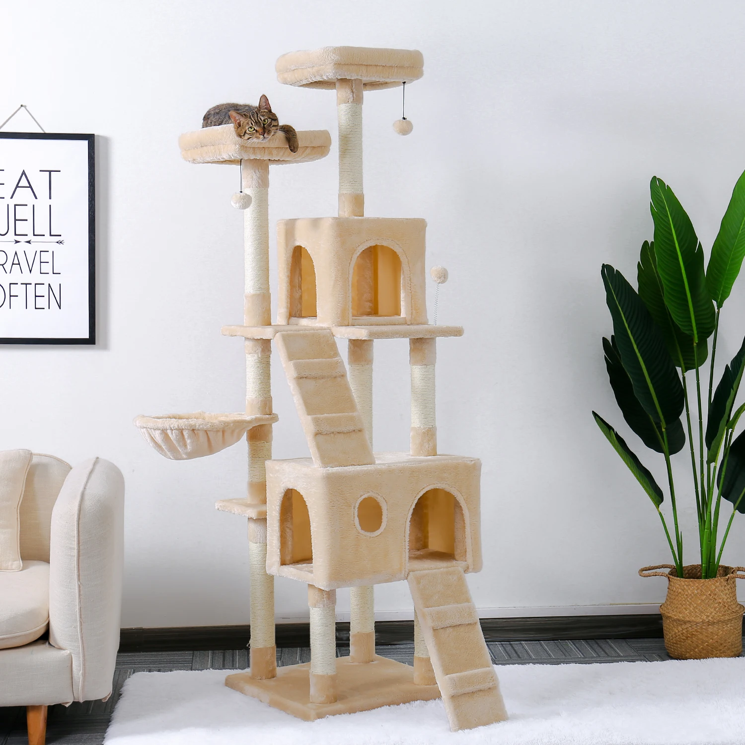 Бытовая доставка, игрушки для кошек, домик для кошки, кровать, подвесные шарики, дерево для котят, дерево для кошек, мебель для игр и когтеточки, твердая древесина для кошек, лазанья рамка
