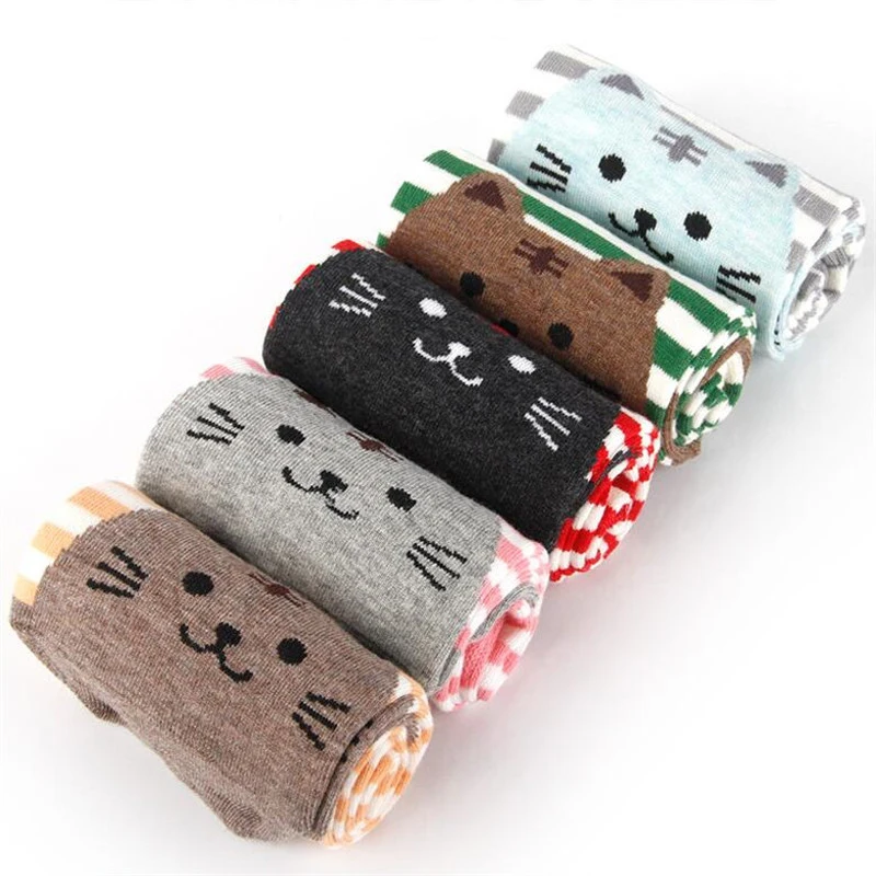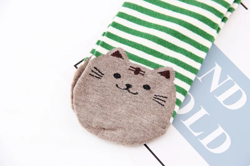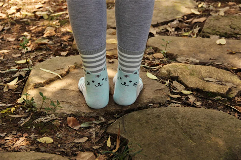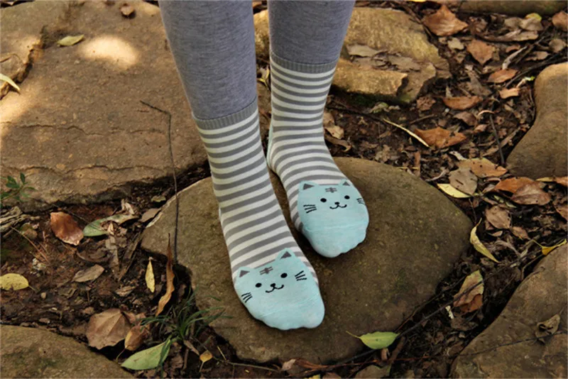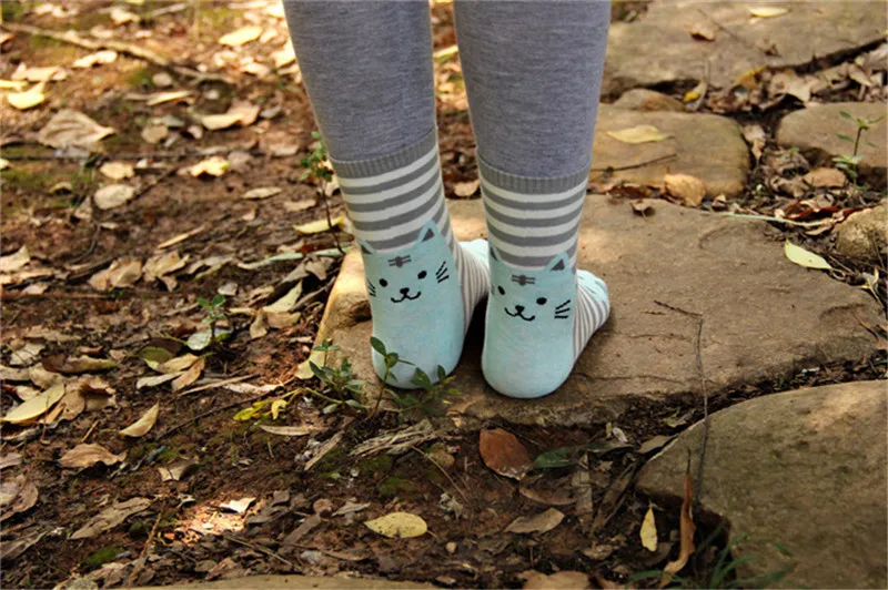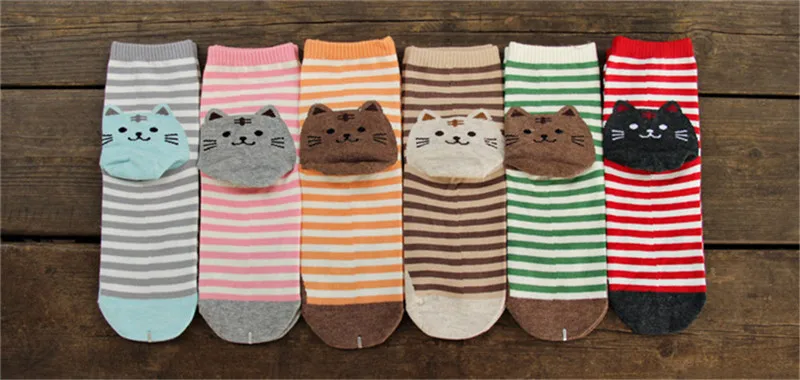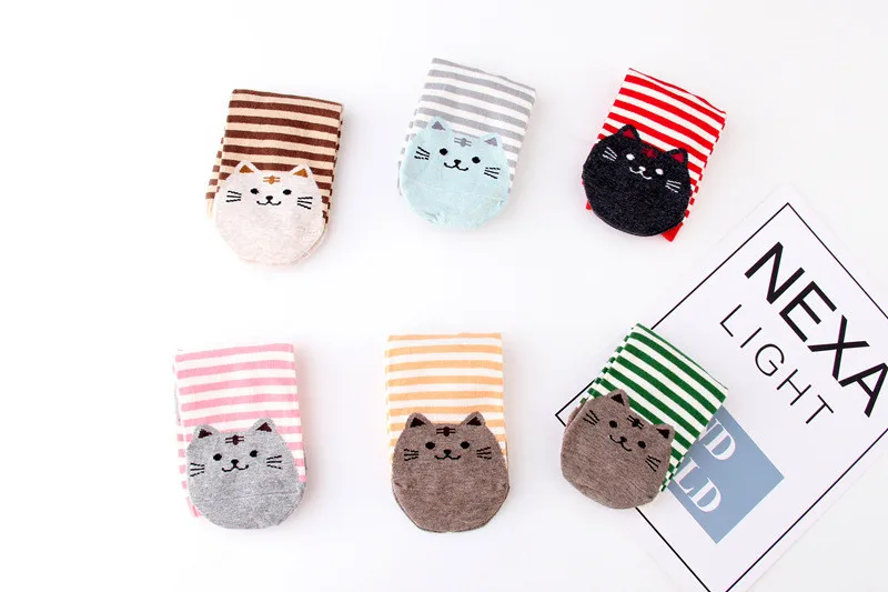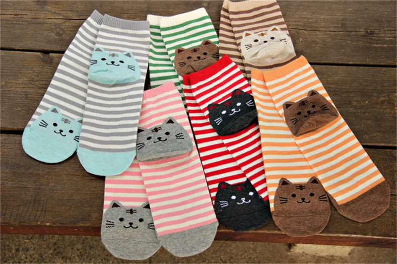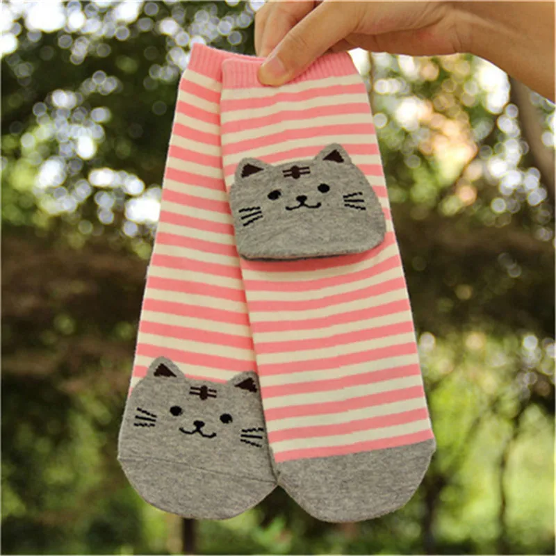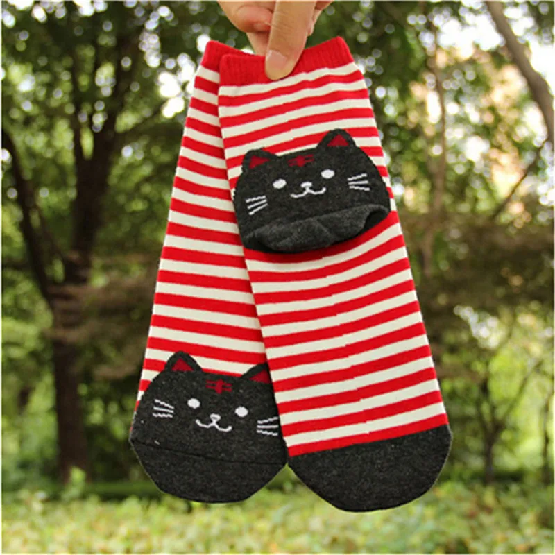 Женские хлопковые носки в Корейском стиле с мультяшным рисунком, розовые, Красные Полосатые носки с кошачьим лицом, женские милые носки с забавными животными