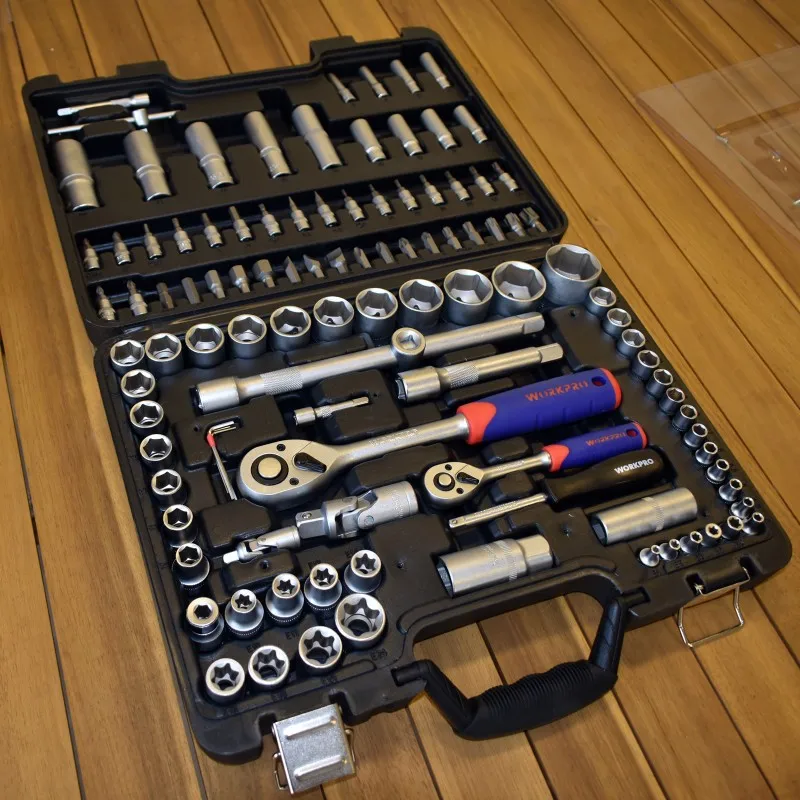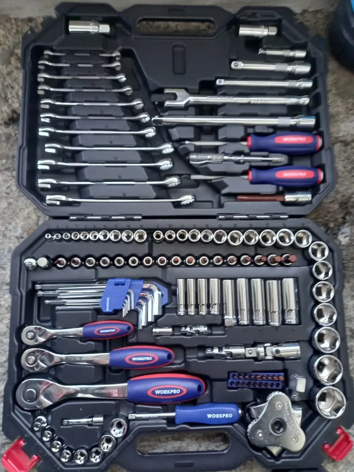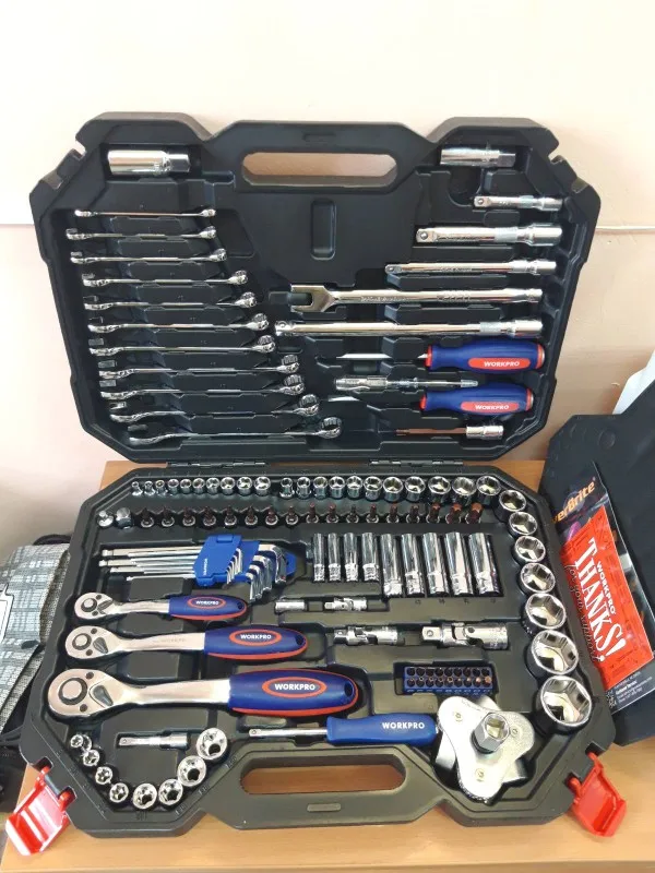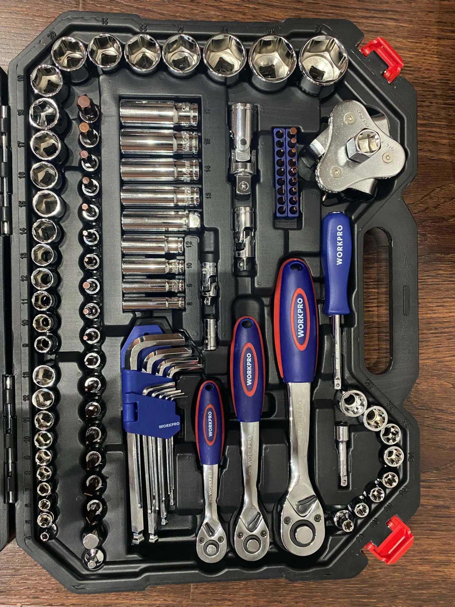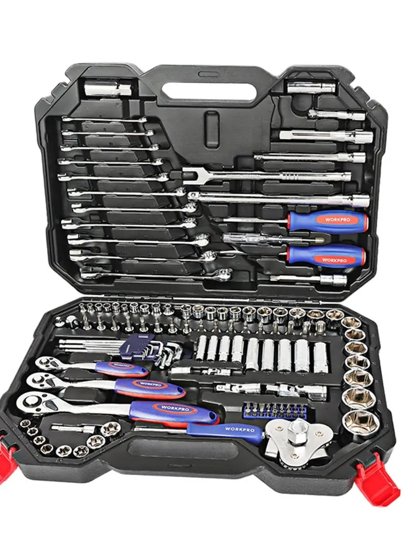 WORKPRO 123 шт. набор инструментов ручной для ремонта автомобиля, гаечный ключ Разъем набор профессиональных Инструменты для ремонта автомобиле...